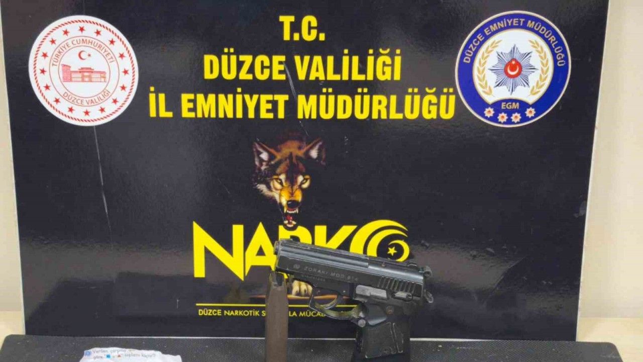 Düzce Cumhuriyet Başsavcılığı koordinesinde polis ve jandarma ekiplerinin uyuşturucu ile mücadelesi sürüyor. Emniyet Müdürlüğü Narkotik Suçlarla Mücadele Şube Müdürlüğü ekiplerince sokak satıcılarına yönelik düzenlenen operasyonda 3 şüpheli yakalandı. Yakalanan şahıslarla birlikte beş parça halinde 10 gram metamfetamin maddesi, 1 gram uyuşturucu hammaddesi olan A-M maddesi, 1 adet ruhsatsız kurusıkı tabanca ve uyuşturucu madde ticaretinden elde edildiği değerlendirilen 4 bin TL para ve 1 adet cep telefonu ele geçirildi. Uyuşturucu madde ticareti yapmak suçundan işlem yapılan Ü.A. (35), B.A. (27) ve T.Ö. (27), Cumhuriyet Başsavcılığı tarafından sevk edildikleri sulh ceza hakimliği tarafından tutuklandı.