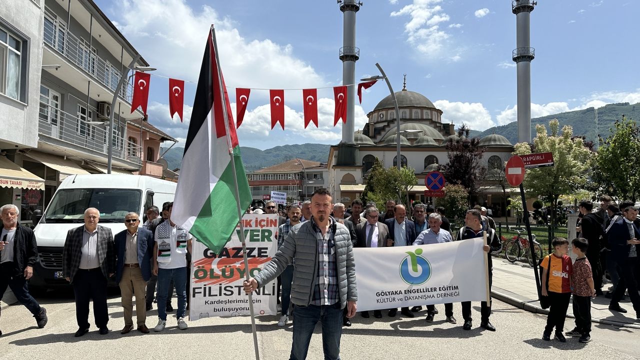 DÜZCE (AA) - Düzce'nin Gölyaka ilçesinde, İsrail'in Gazze'ye yönelik saldırıları protesto edildi.