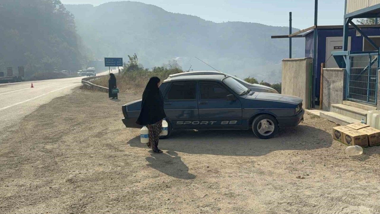 Düzceliler, orman yangınına müdahale eden personellere su, maske, ayran ve yiyecek taşıdı. Evinden ayran yapıp getiren kadın, "Allah onlardan razı olsun" dedi.