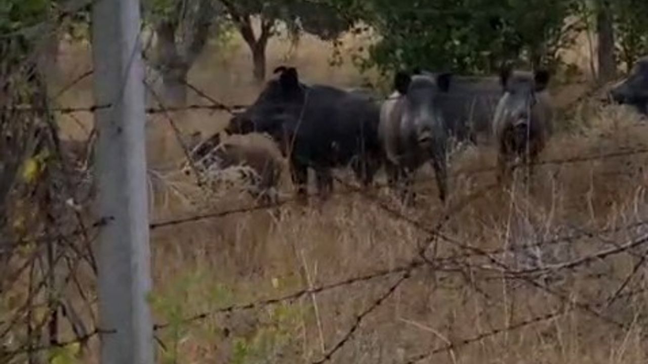 Ankara’nın Elmadağ ilçesinde bir tarlada domuz sürüsü görüldü.