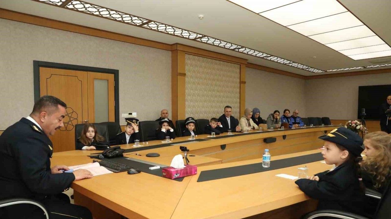 Daha sonra İl Emniyet Müdürlüğü’nün toplantı salonuna alınan minik konuklar için anlamlı bir etkinlik gerçekleştirildi.