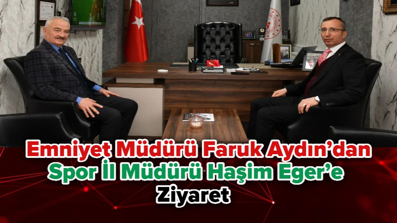 Tokat İl Emniyet Müdürü Faruk Aydın, Tokat Gençlik ve Spor İl Müdürü Haşim Eger’i makamında ziyaret etti. Gerçekleşen ziyaret sırasında kurumlar arası iş birliği ve gençlere yönelik projelerle ilgili değerlendirmelerde bulunuldu. Gençlik ve Spor İl Müdürlüğü, bu anlamlı ziyaret dolayısıyla Faruk Aydın’a teşekkürlerini iletti.