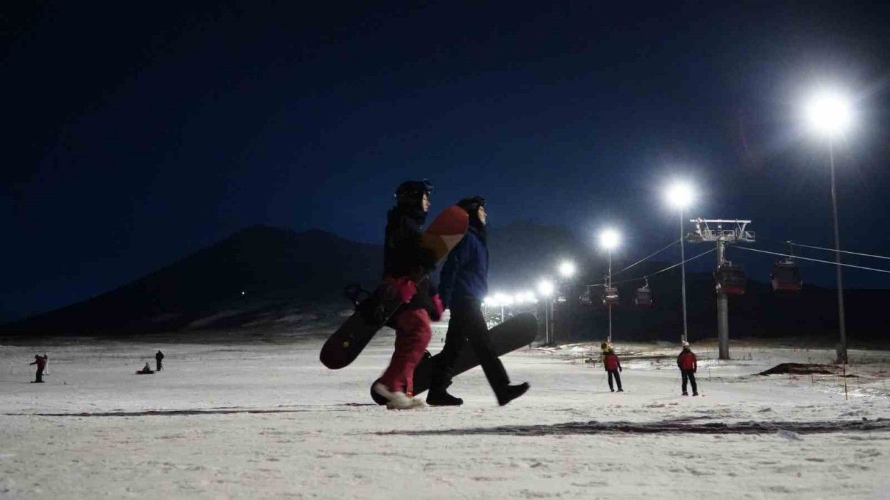 Erciyes Kayak Merkezi, gece kayağında yerli ve yabancı turistlerin açık olan teleferiklerle gecenin karanlığında dağın tepesine doğru yol almak, gökyüzünde ışıl ışıl parlayan yıldızların nefes kesen manzarası altında kayak 8-yapma imkanı sunuyor.