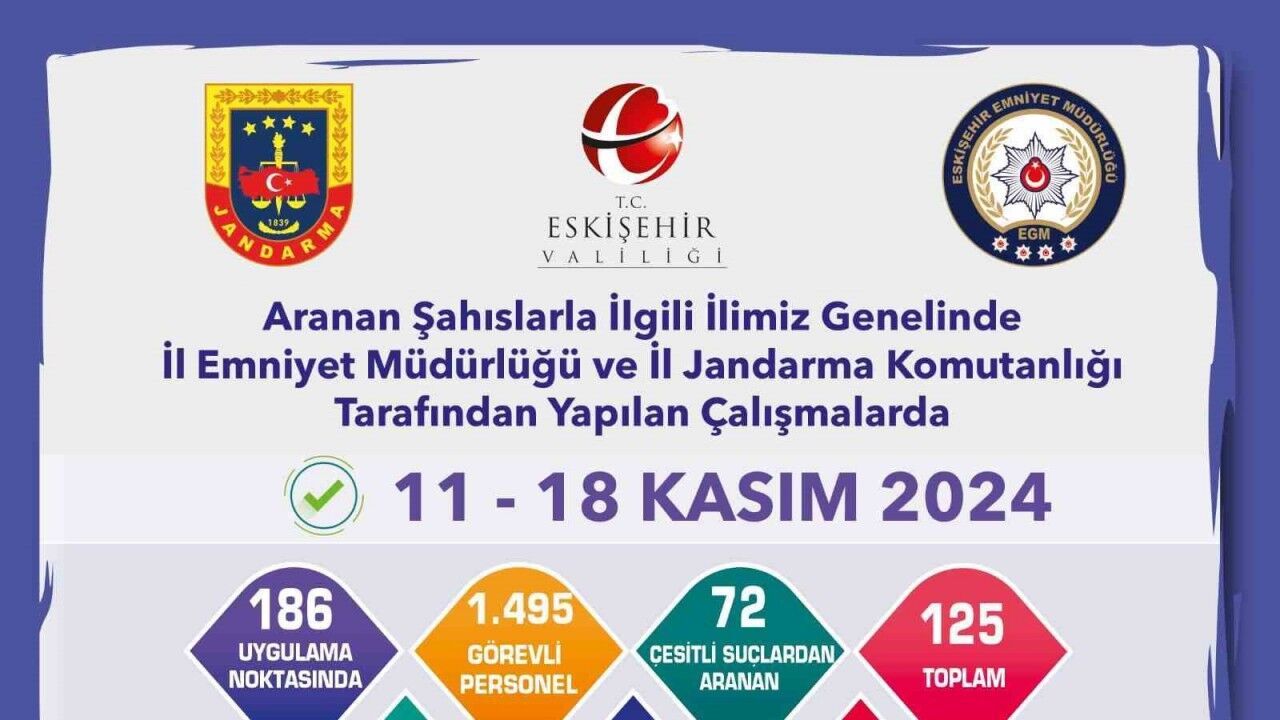 Edinilen bilgilere göre, İl Emniyet Müdürlüğü ve İl Jandarma Komutanlığı personelleri tarafından kent genelinde 186 uygulama noktası oluşturuldu. Gerçekleştirilen denetimde bin 495 personel görev alırken çeşitli suçlardan aranması bulunan 72 kişi yakalandı. Ayrıca farklı sürelerde kesinleşmiş hapis cezası bulunan 53 firari şahıs yakalandı.