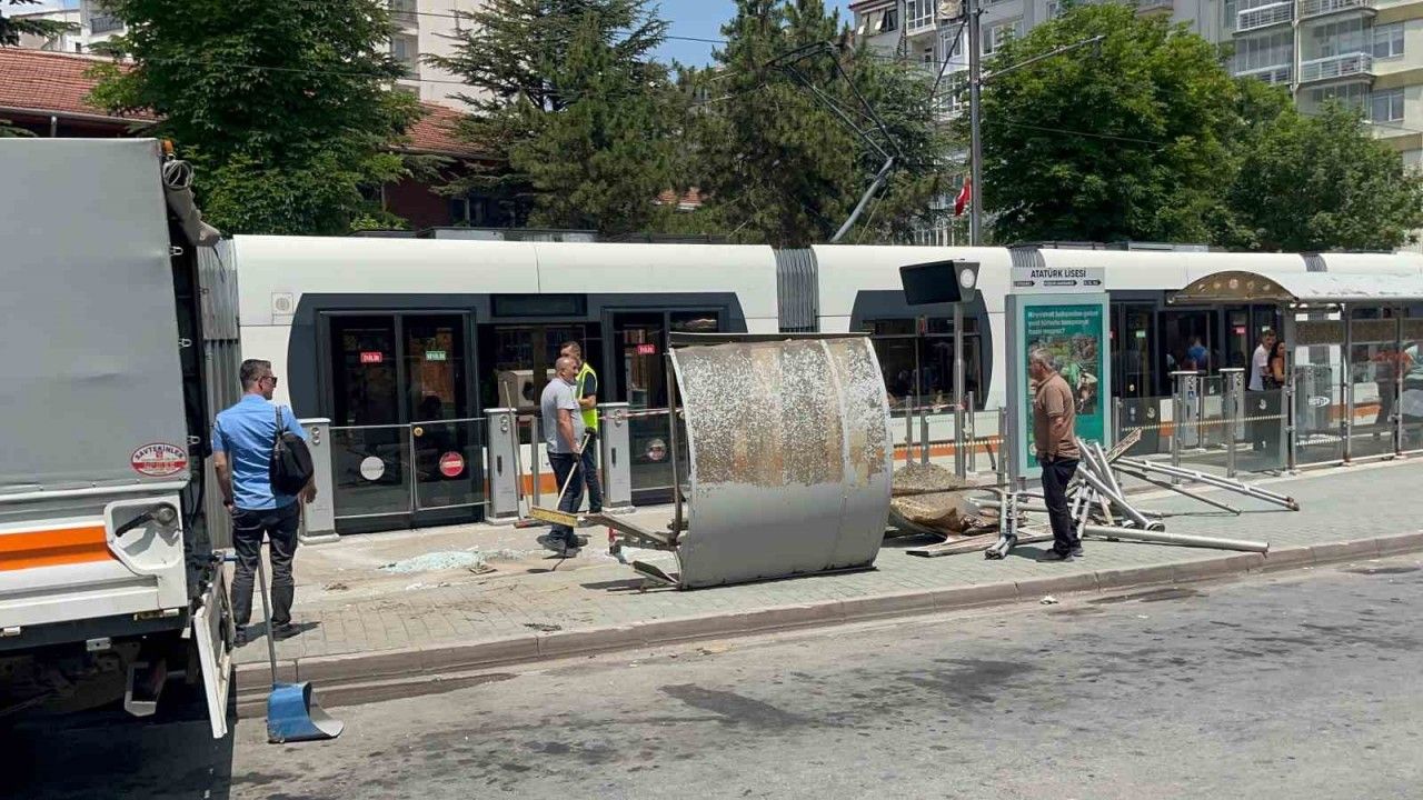 Eskişehir’de kontrolden çıkan otobüs, tramvay durağına daldı. Kazada sürücü ile 1 kişi hafif şekilde yaralandı.