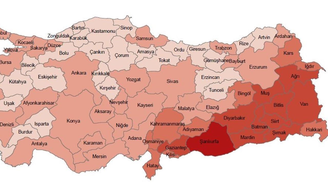 ADNKS Sonuçlarına göre illerin toplam nüfusları içindeki çocuk nüfus oranları incelendiğinde, 2024 yılında en yüksek çocuk nüfus oranına sahip olan il, yüzde 43,8 ile Şanlıurfa oldu. Şanlıurfa ilini yüzde 39,8 ile Şırnak, yüzde 37,4 ile Ağrı, Mardin ve Muş izledi.