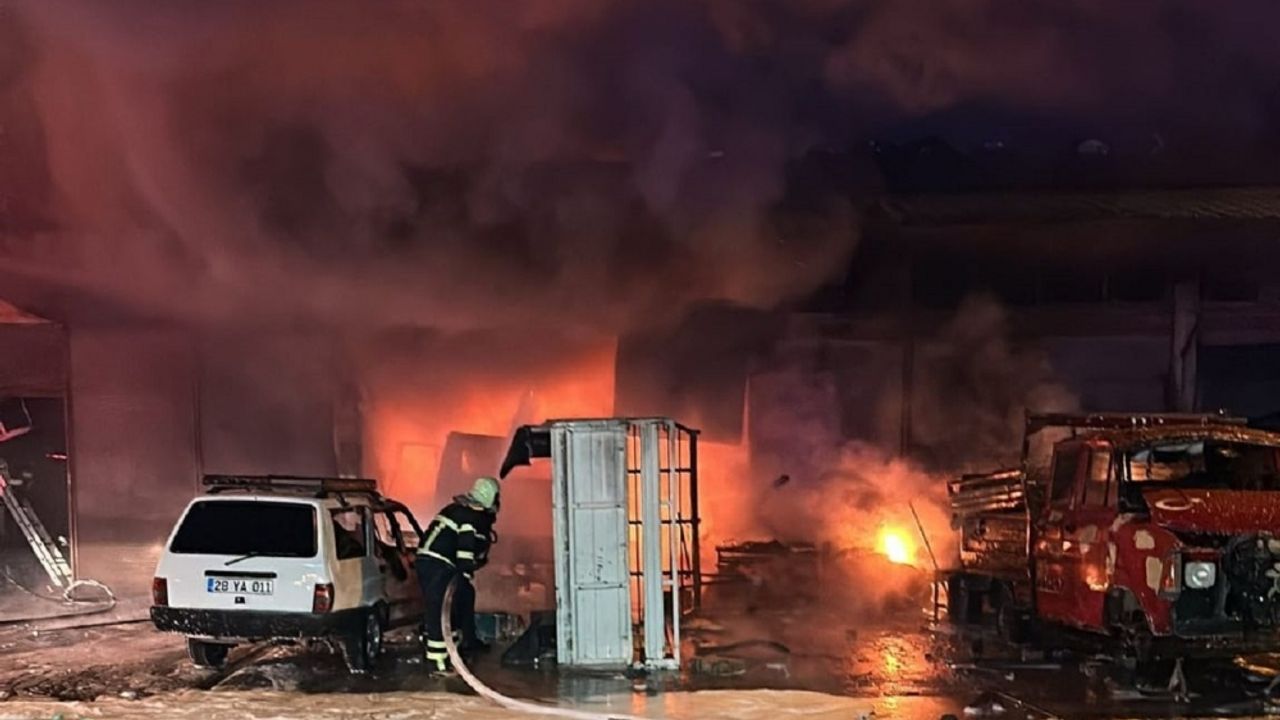 GİRESUN (AA) - Giresun'un Espiye ilçesindeki sanayi sitesinde çıkan yangında 3 iş yeri ile 3 otomobil zarar gördü.