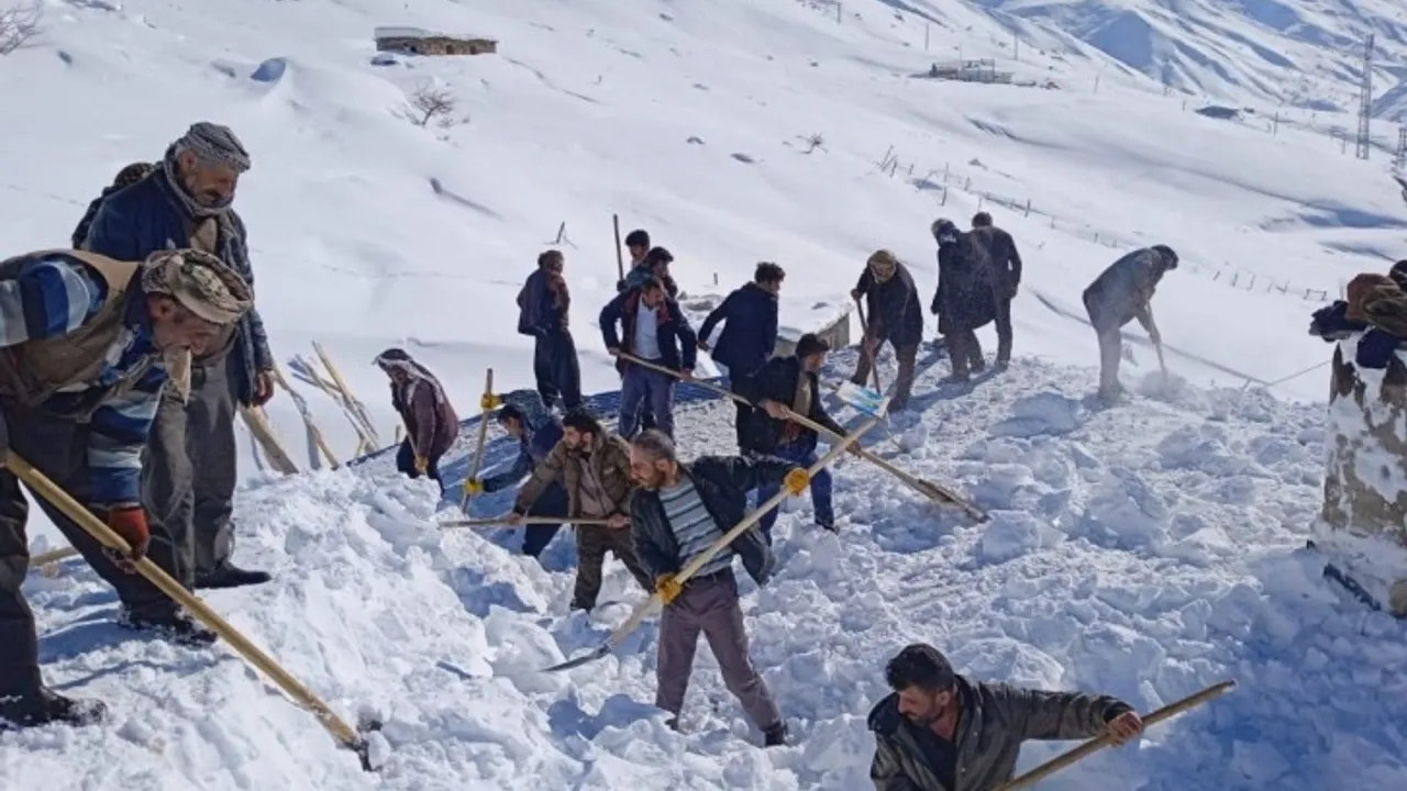 Yaklaşık 1 haftadır etkili olan kar yağışı ve tipinin ardından havanın açmasıyla muhtar Şemsettin Öz'ün öncülüğünde bir araya gelen mahalle sakinleri, evin çatısında ve penceresinden odalara giren karları temizlemeye başladı.