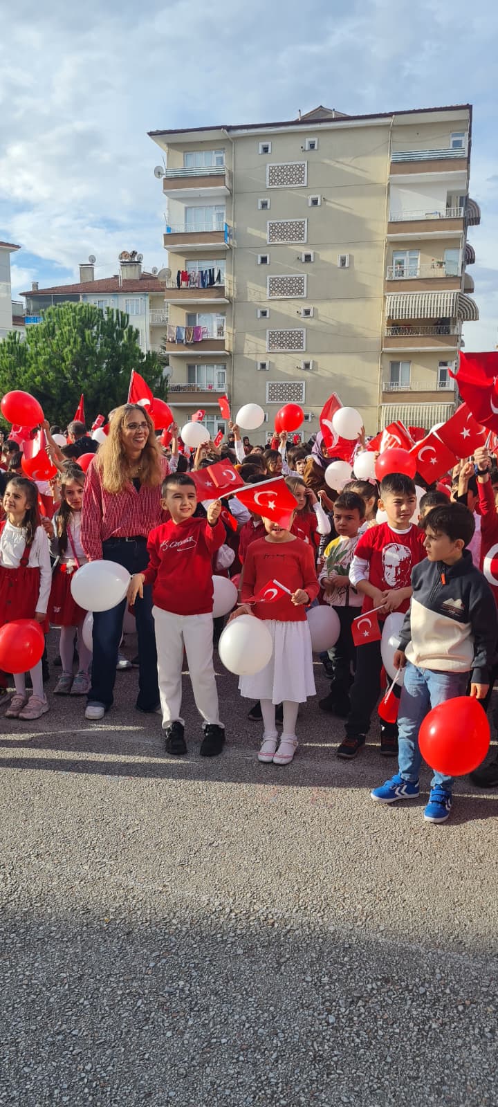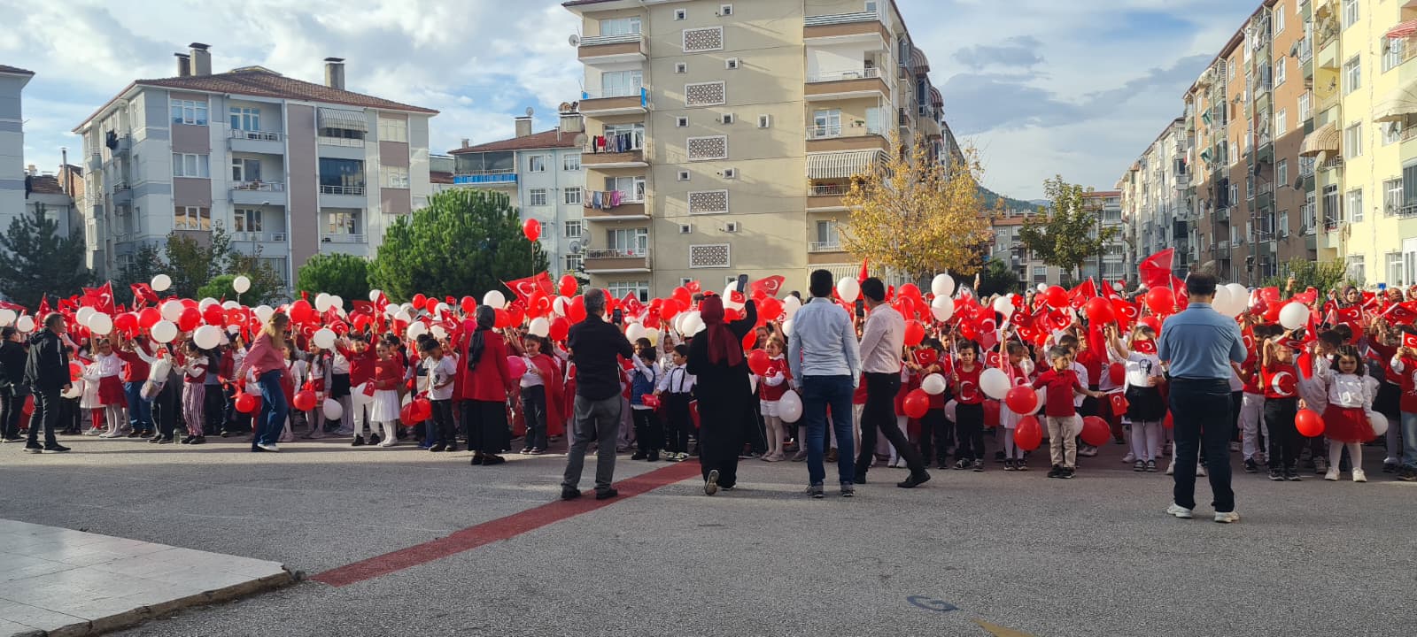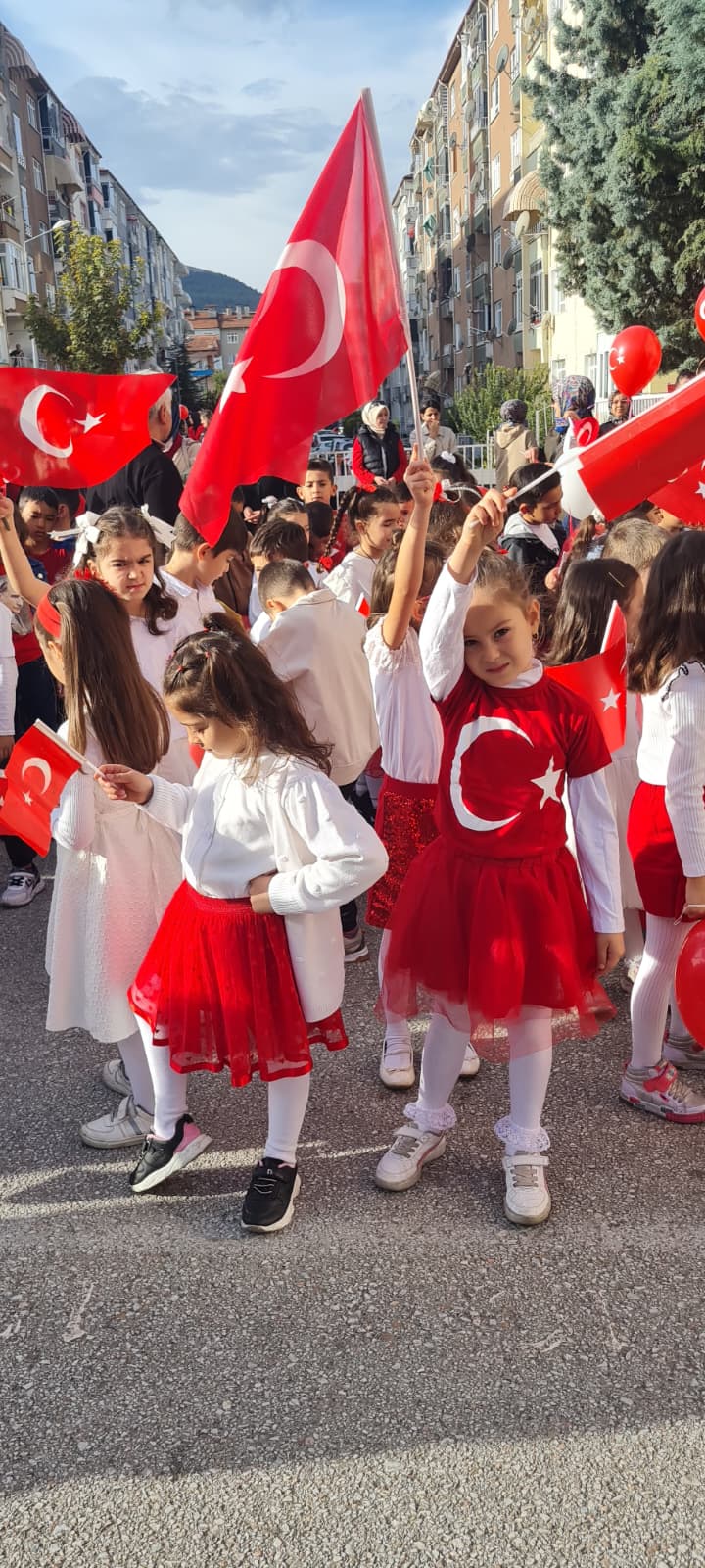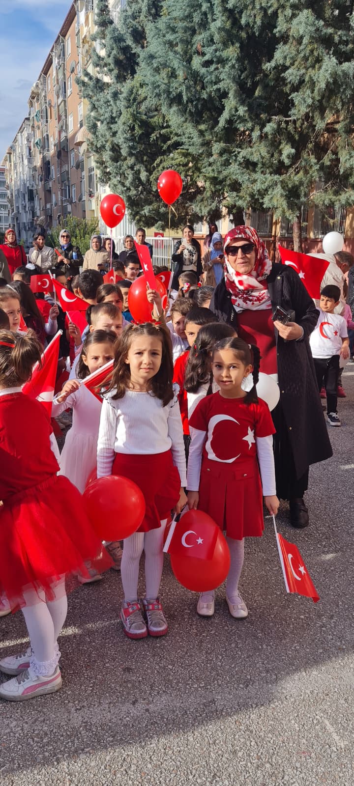 Türkiye Cumhuriyeti'nin kuruluşunun 102. yıl dönümü, okul bahçesinden başlayarak mahalle sokaklarında devam eden yürüyüşle kutlandı. Öğrenciler, öğretmenler ve velilerin katılımıyla gerçekleşen etkinlikte, kırmızı-beyaz kıyafetleri ve ellerinde Türk bayrakları taşıyan öğrenciler "Yaşasın Cumhuriyet" sloganları eşliğinde yürüdü.