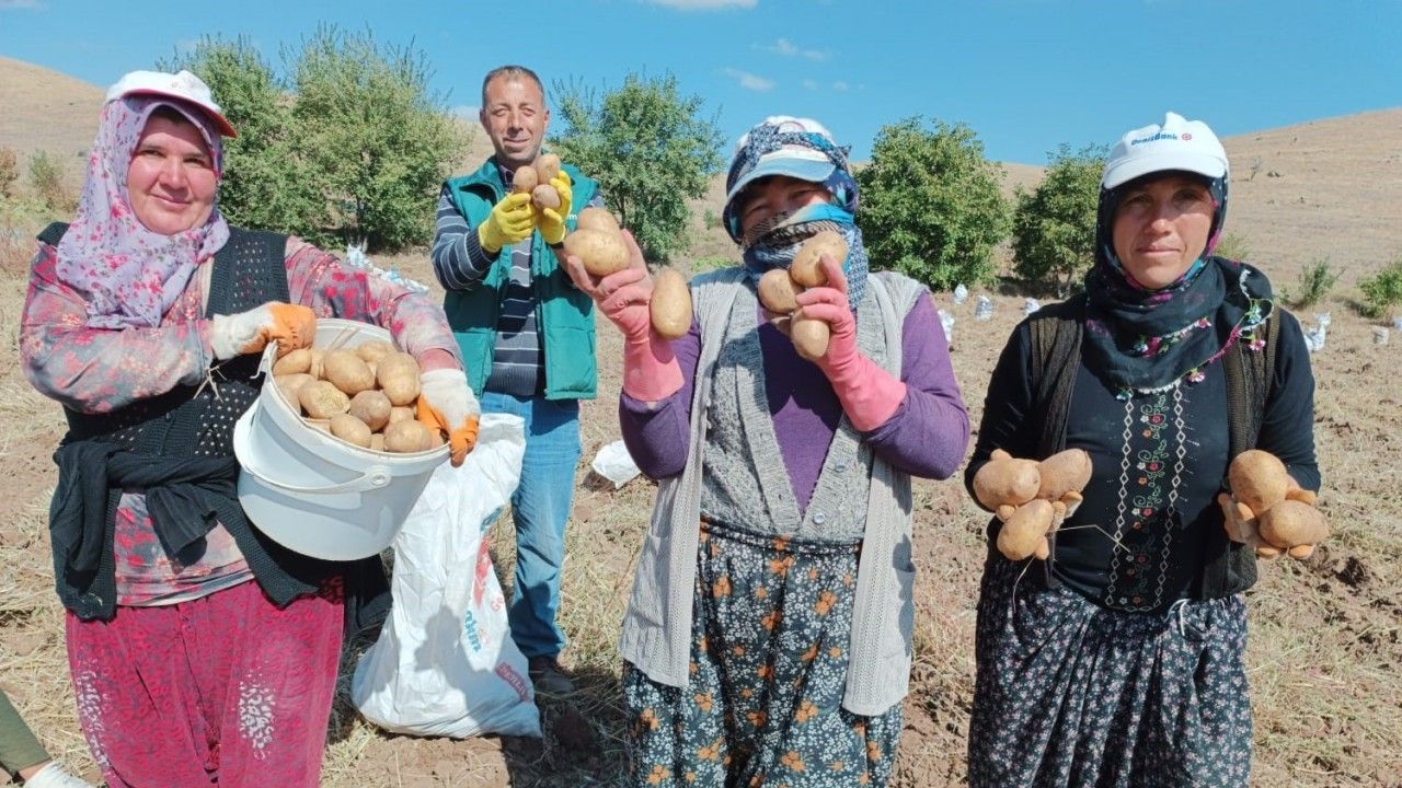 İlçede yaklaşık 40 bin dekar alanda devam eden hasatta çalışan kadınlar tarafından toplanan patatesler, çuvallara konularak depolara gönderiliyor. Kadınlarla renkli görüntülerin oluştuğu hasatta üreticiler mantar (mildiyo) hastalıklarından dolayı üzgün oldukları görüldü.