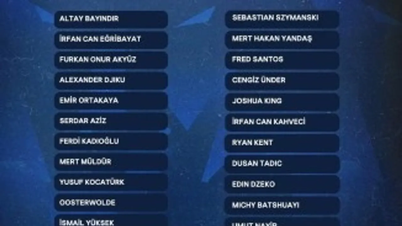 "Altay Bayındır, İrfan Can Eğribayat, Furkan Onur Akyüz, Alexander Djiku, Emir Ortakaya, Serdar Aziz, Ferdi Kadıoğlu, Mert Müldür, Yusuf Kocatürk, Jayden Oosterwolde, İsmail Yüksek, Bartuğ Elmaz, Sebastian Szymanski, Mert Hakan Yandaş, Fred Santos, Cengiz Ünder, Joshua King, İrfan Can Kahveci, Ryan Kent, Dusan Tadic, Edin Dzeko, Michy Batshuayi, Umut Nayir."