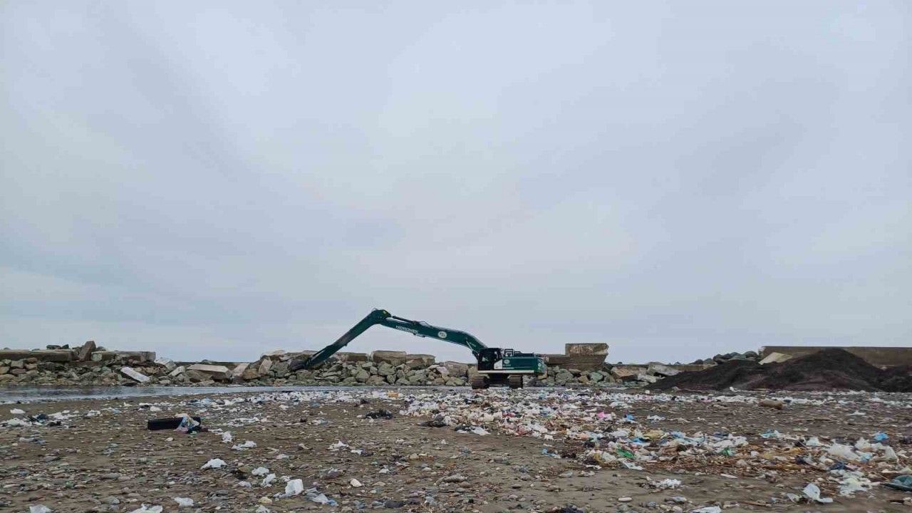Kastamonu’nun Abana ilçesinde etkili olan fırtına sebebiyle girişi kumla kapanan balıkçı barınağında çalışma başlatılırken, sahildeki deniz suyunun çekilmesinin ardından ise geriye çöp yığını kaldı.