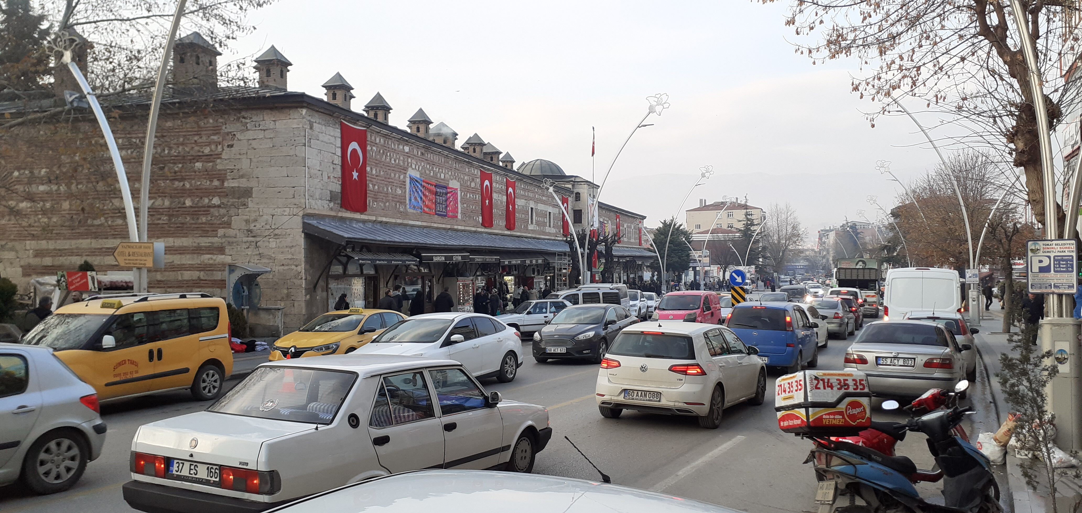 Tokat Şehiriçi trafikte ana arterlerde akışkanlık yavaş, tali yollardan ana arterlere çıkışta yoğunluk gözlemleniyor. Behzat'tan girişte olduğu gibi...