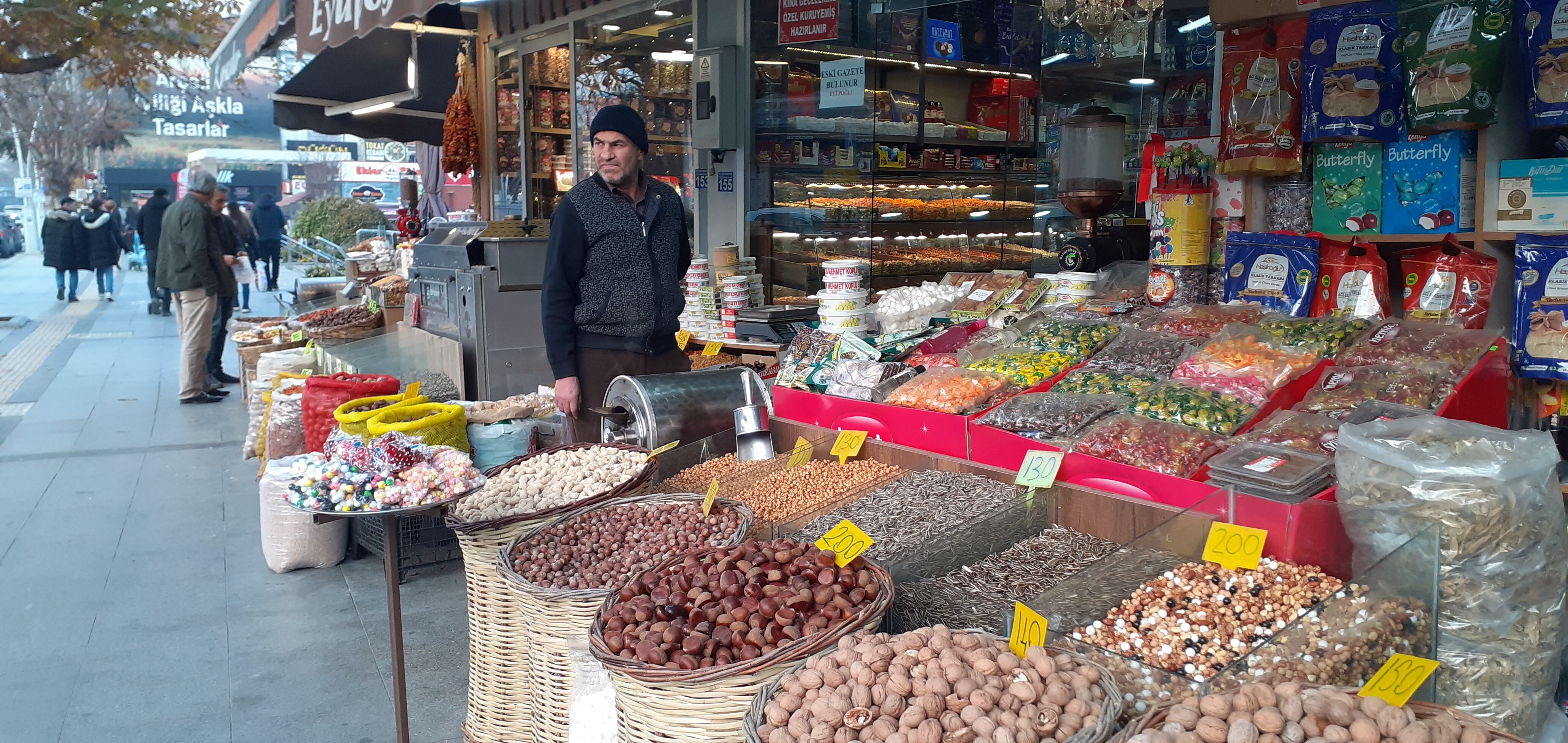 Vatandaşlar kuruyemişte dilediğini seçip alıyor.