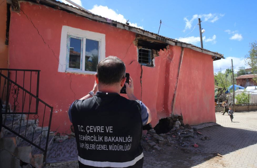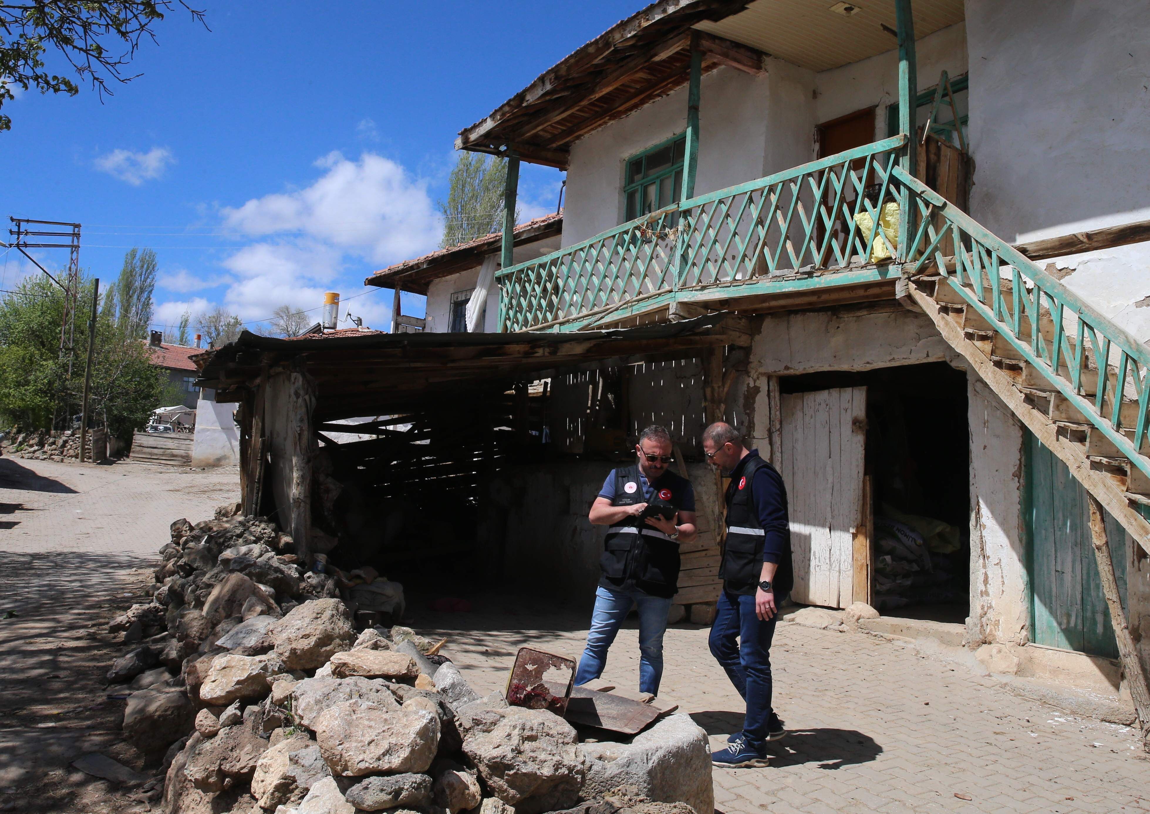 Sulusaray ilçesinde 18 Nisan'da meydana gelen 4,7 ve 5,6 büyüklüğündeki depremler nedeniyle bölgede hasar gören evler ve iş yerlerinde hasar tespit çalışmaları yapılıyor.