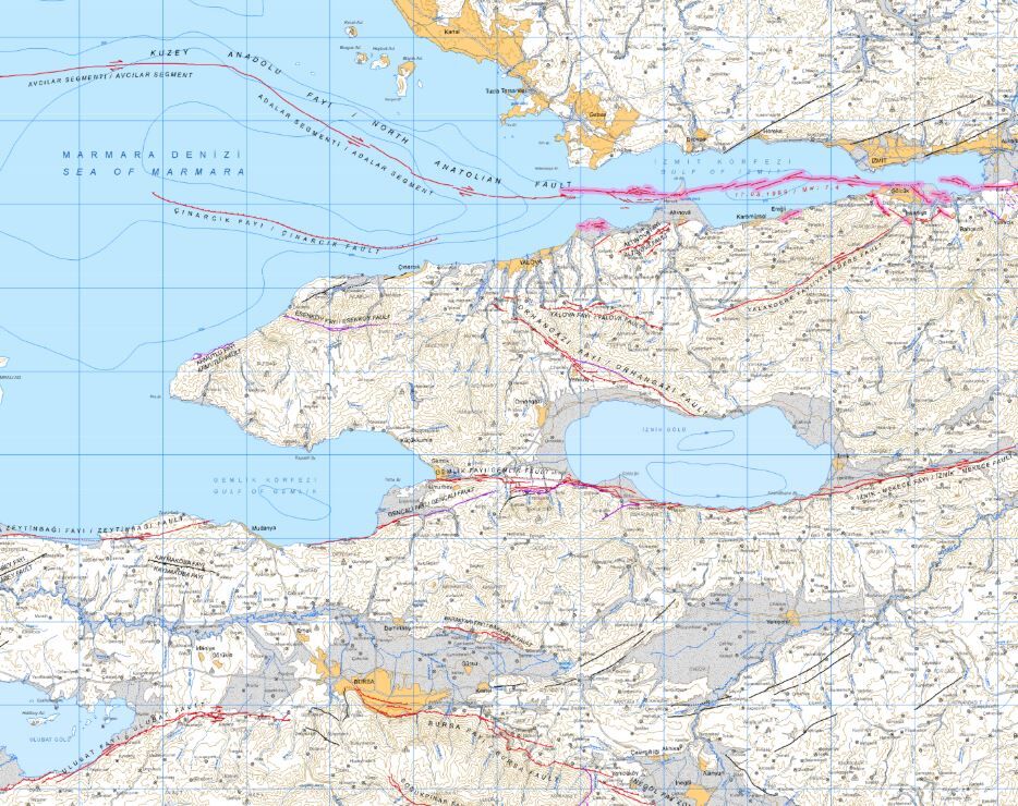 MTA Diri Fay Hatları Haritası'na göre birinci derece riskli bölgeler arasında İzmir, Balıkesir, Manisa, Muğla, Aydın, Denizli, Isparta, Uşak, Bursa, Bilecik, Yalova, Sakarya, Düzce, Kocaeli, Kırşehir, Bolu, Karabük, Hatay, Bartın, Çankırı, Tokat, Amasya, Çanakkale, Erzincan, Tunceli, Bingöl, Muş, Hakkari, Osmaniye, Kırıkkale ve Siirt yer alıyor.