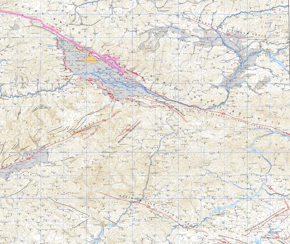 Türkiye'nin kuzey kesiminde doğu-batı doğrultusunda uzanan Kuzey Anadolu Fay Hattı, Saros Körfezi'nden başlayarak Aras Vadisi'ne kadar uzanır. Bu hat boyunca, Gelibolu, Marmara Denizi’nin derin kısımları, İzmit Körfezi, Adapazarı, Düzce-Bolu, Gerede, Merzifon, Suluova, Erbaa-Niksar, Kelkit Vadisi, Erzincan, Erzurum, Varto ve Van gibi yerleşim yerleri bulunmaktadır. Ayrıca, Çanakkale, Edremit, Bursa ve İznik de bu kuşak içerisinde kalır.