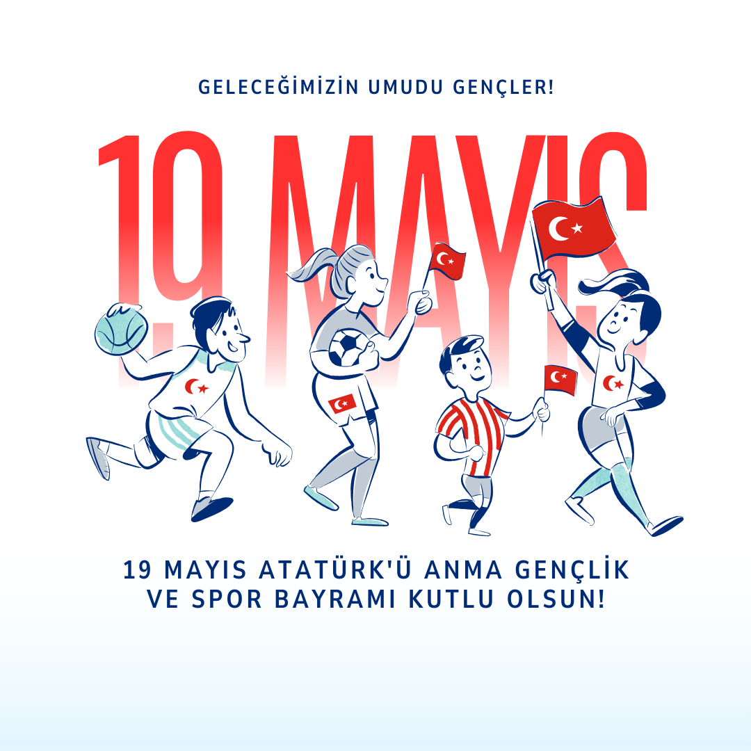 19 Mayıs, milletimizin bağımsızlık ve özgürlük yolundaki ilk adımının atıldığı gündür. Mustafa Kemal Atatürk'ün Samsun'a çıkarak başlattığı milli mücadele, gençlere olan güveni ve inancı simgeler. Bu özel gün, gençlerimize armağan edilmiştir. Sporun, sağlıklı yaşamın ve birlikteliğin önemini vurgulayan bu bayramda, gençlerimizin enerjisiyle geleceğe umutla bakıyoruz. Atatürk'ün izinde, daha aydınlık bir geleceğe doğru hep birlikte yürüyelim. 19 Mayıs Atatürk'ü Anma, Gençlik ve Spor Bayramı'mız kutlu olsun!