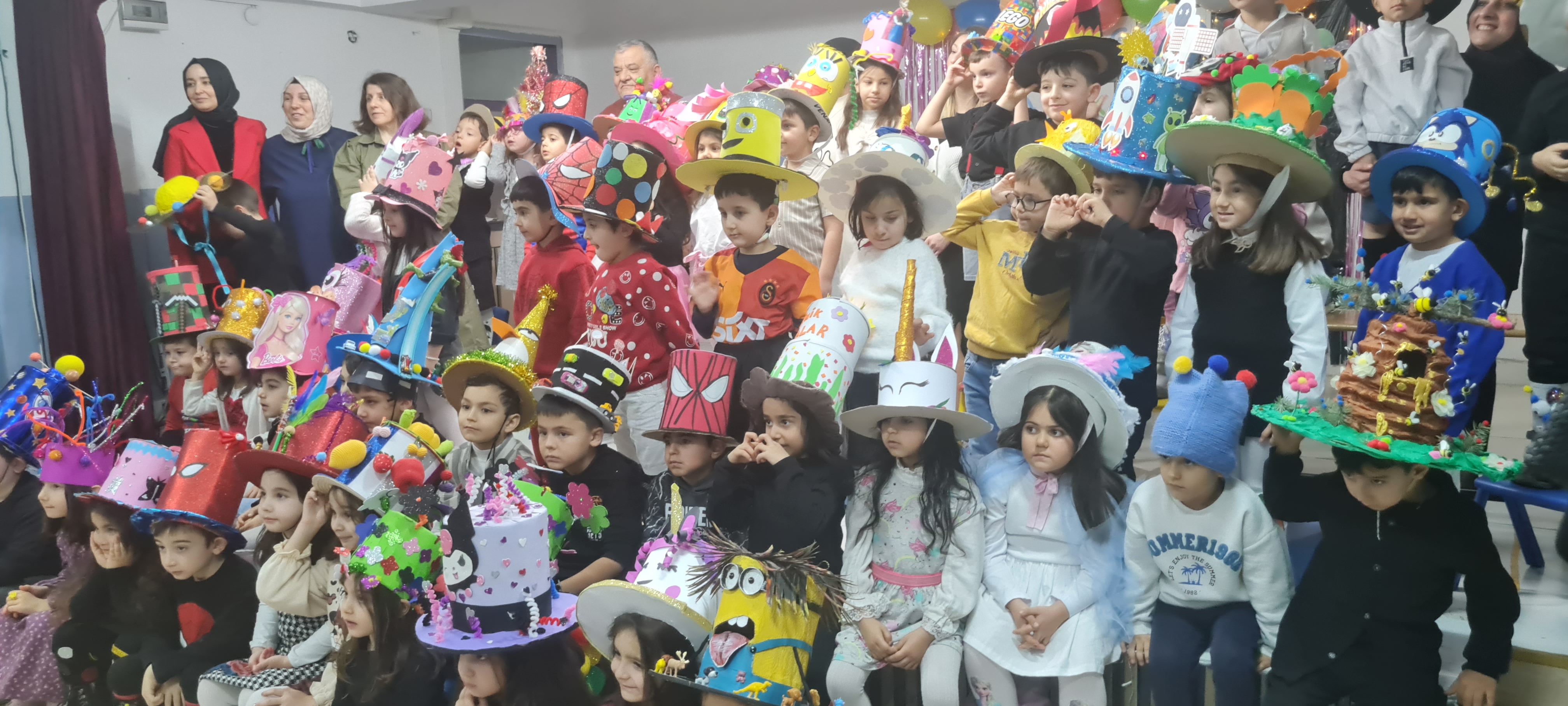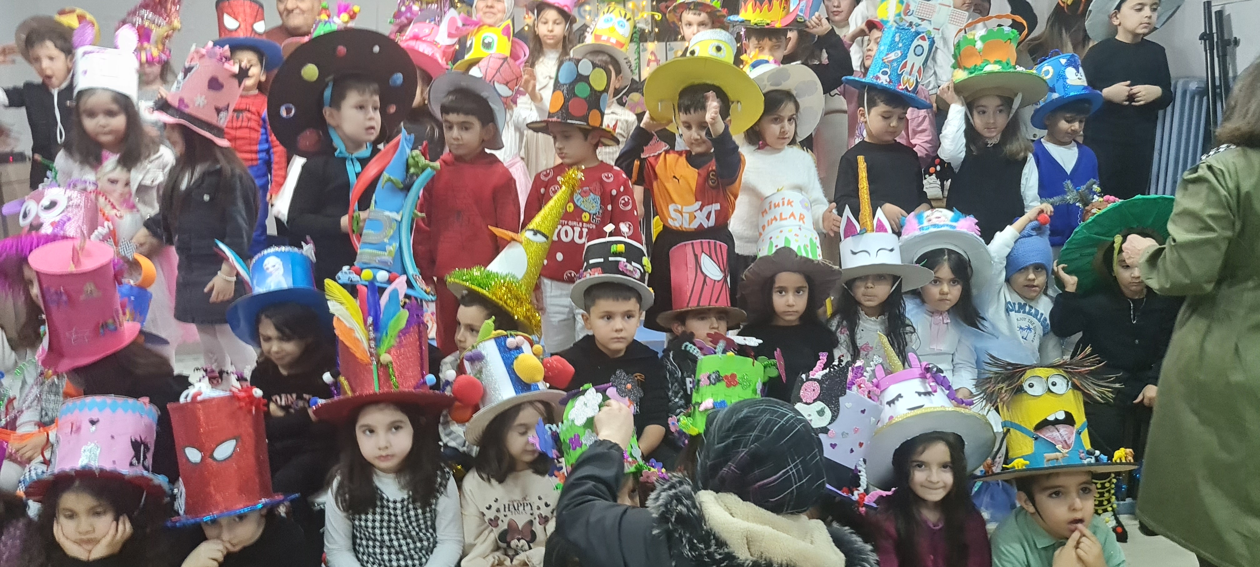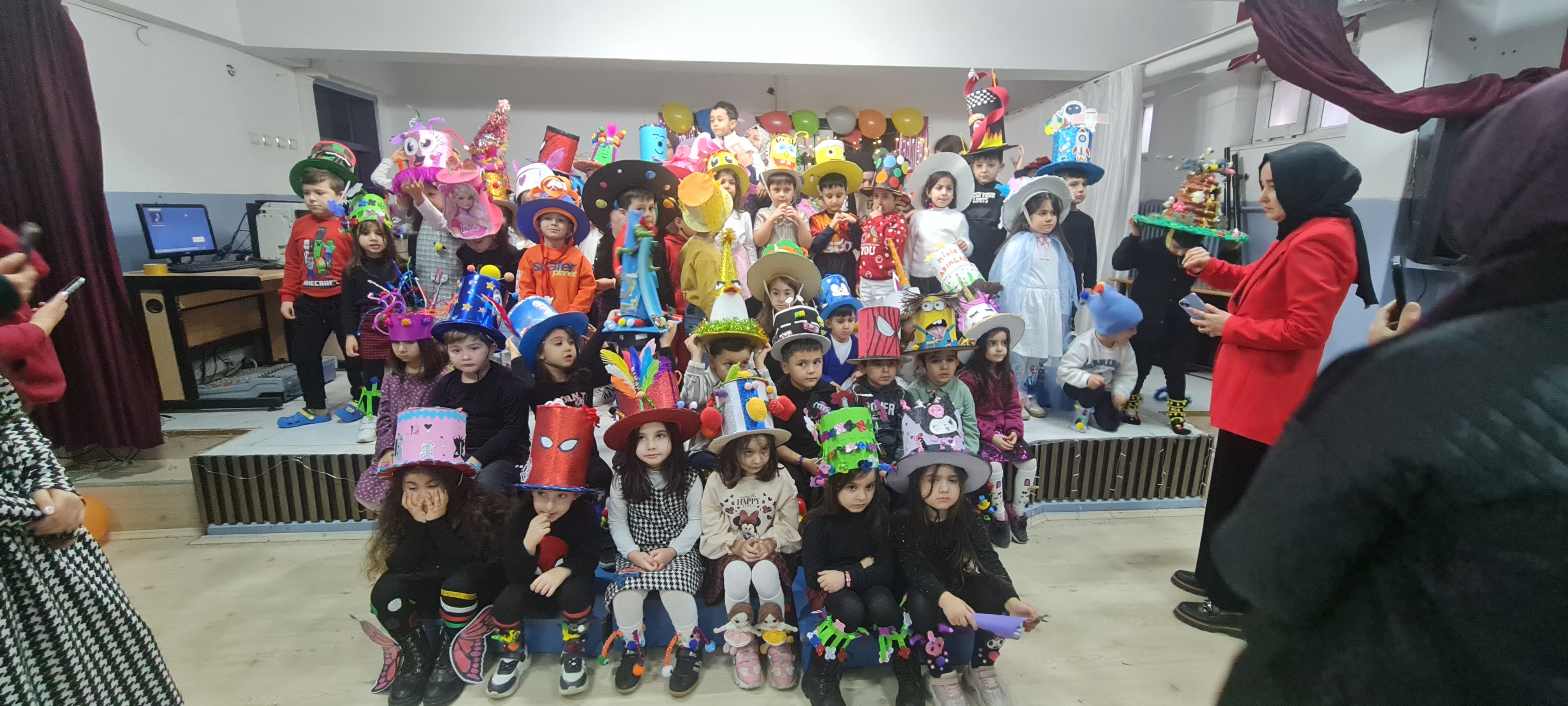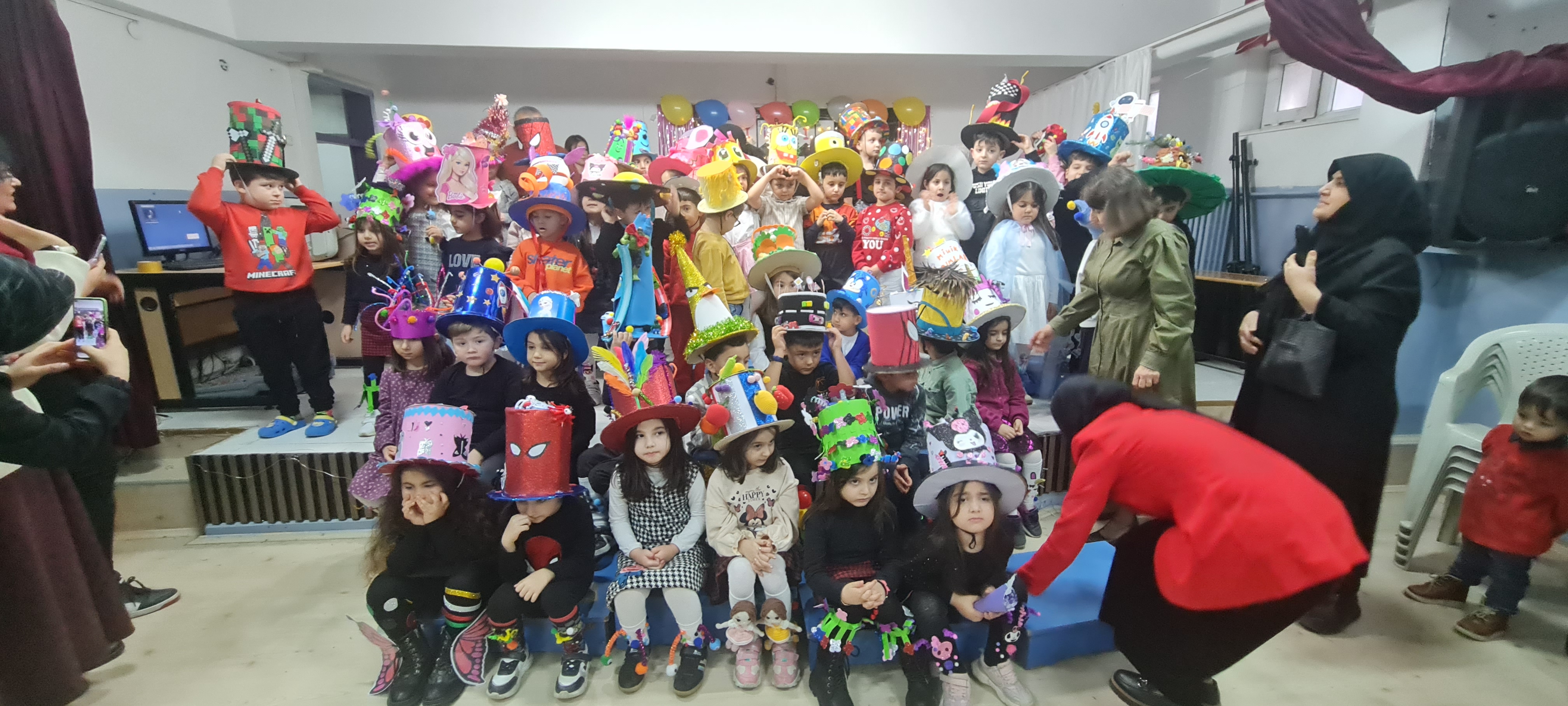 Okul öncesi öğretmenleri; Leyla Erdemir, Aysel Hızlı Yıldız ve Selma Türk’ün koordinesinde düzenlenen etkinliğe, veliler de yoğun ilgi gösterdi. Sabahın erken saatlerinden itibaren büyük bir özenle hazırlanan minik öğrenciler; el emeği göz nuru, sıra dışı şapka tasarımları ve rengarenk, desenli çoraplarıyla okul koridorunda defile yaptı.