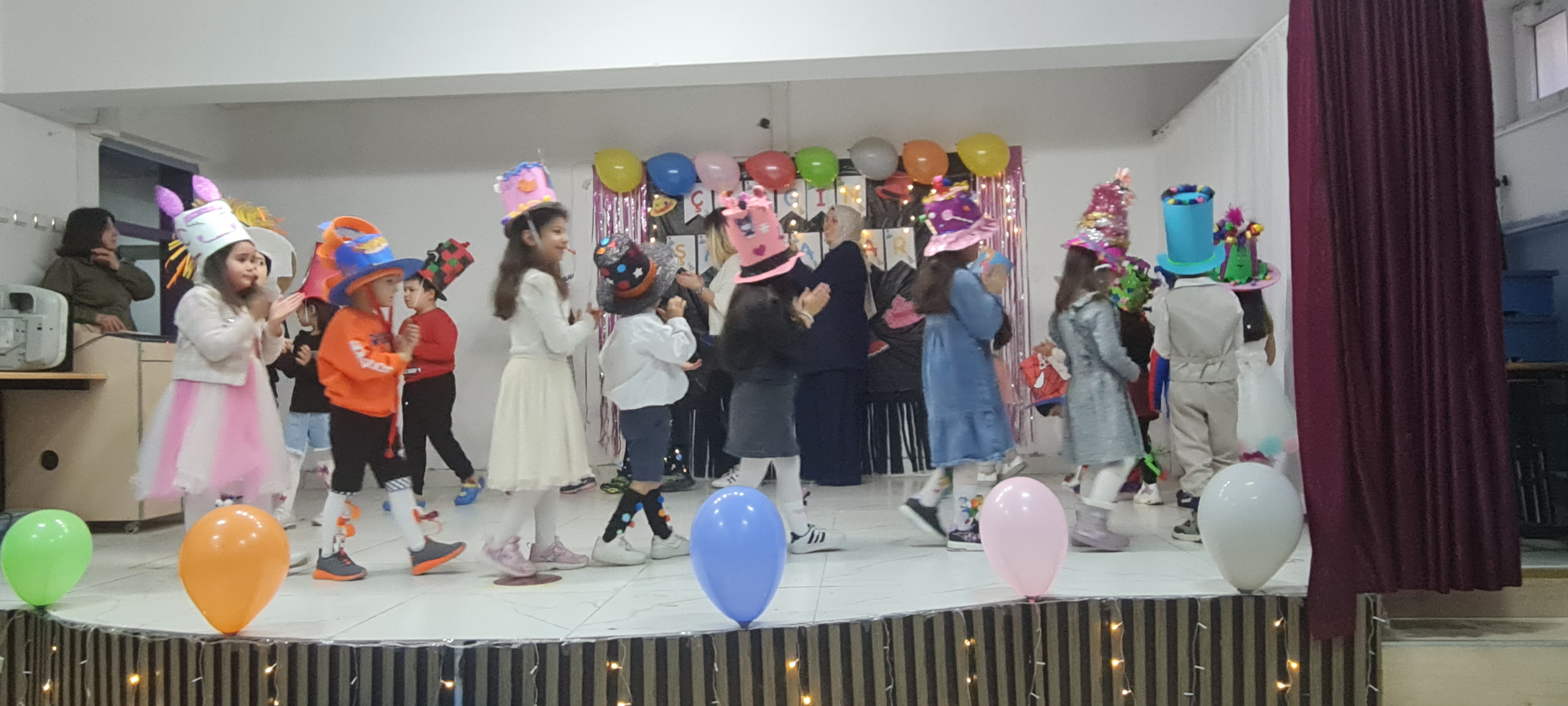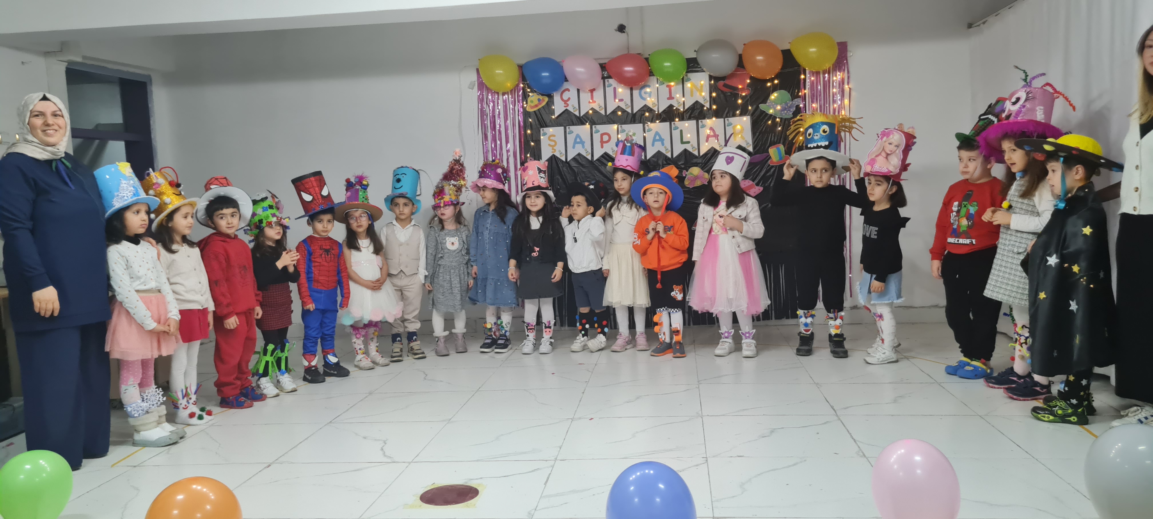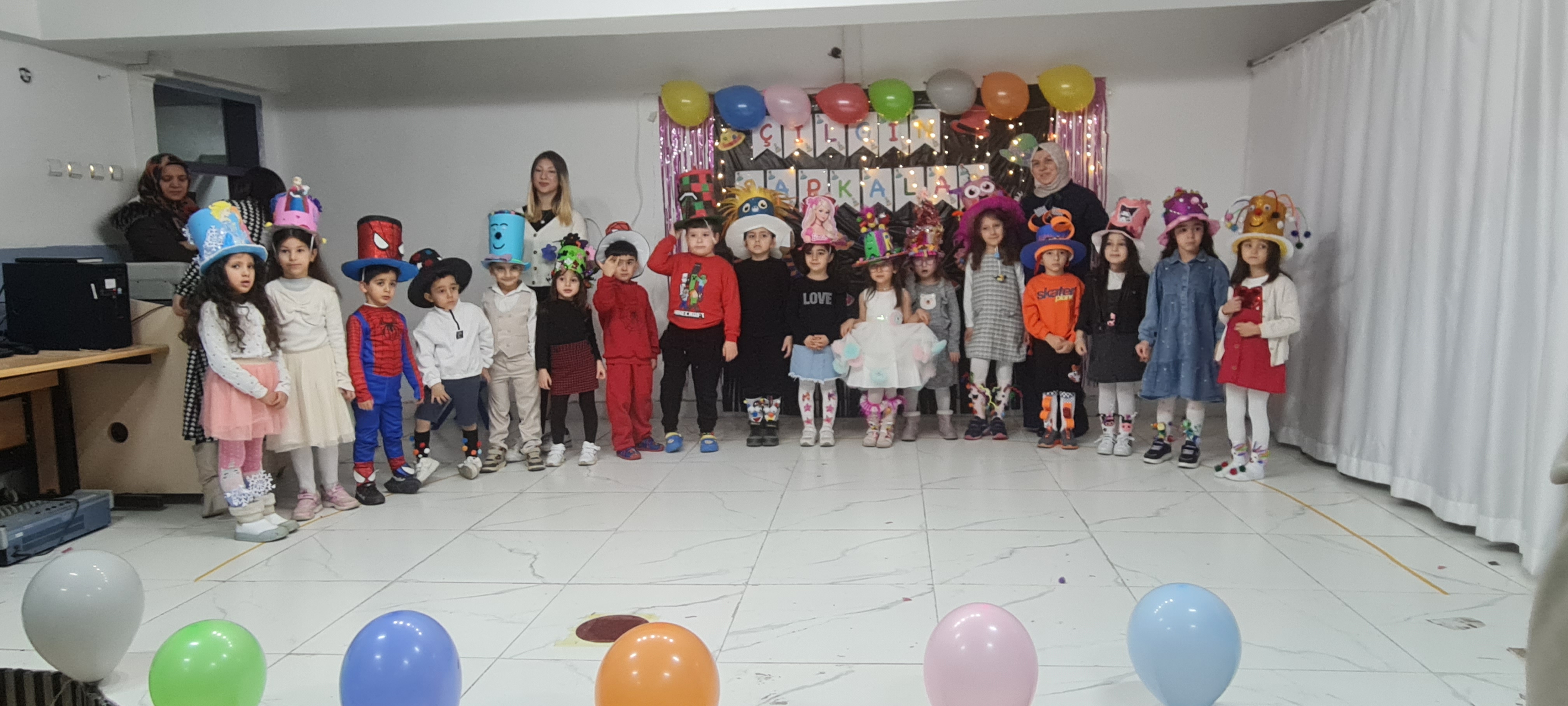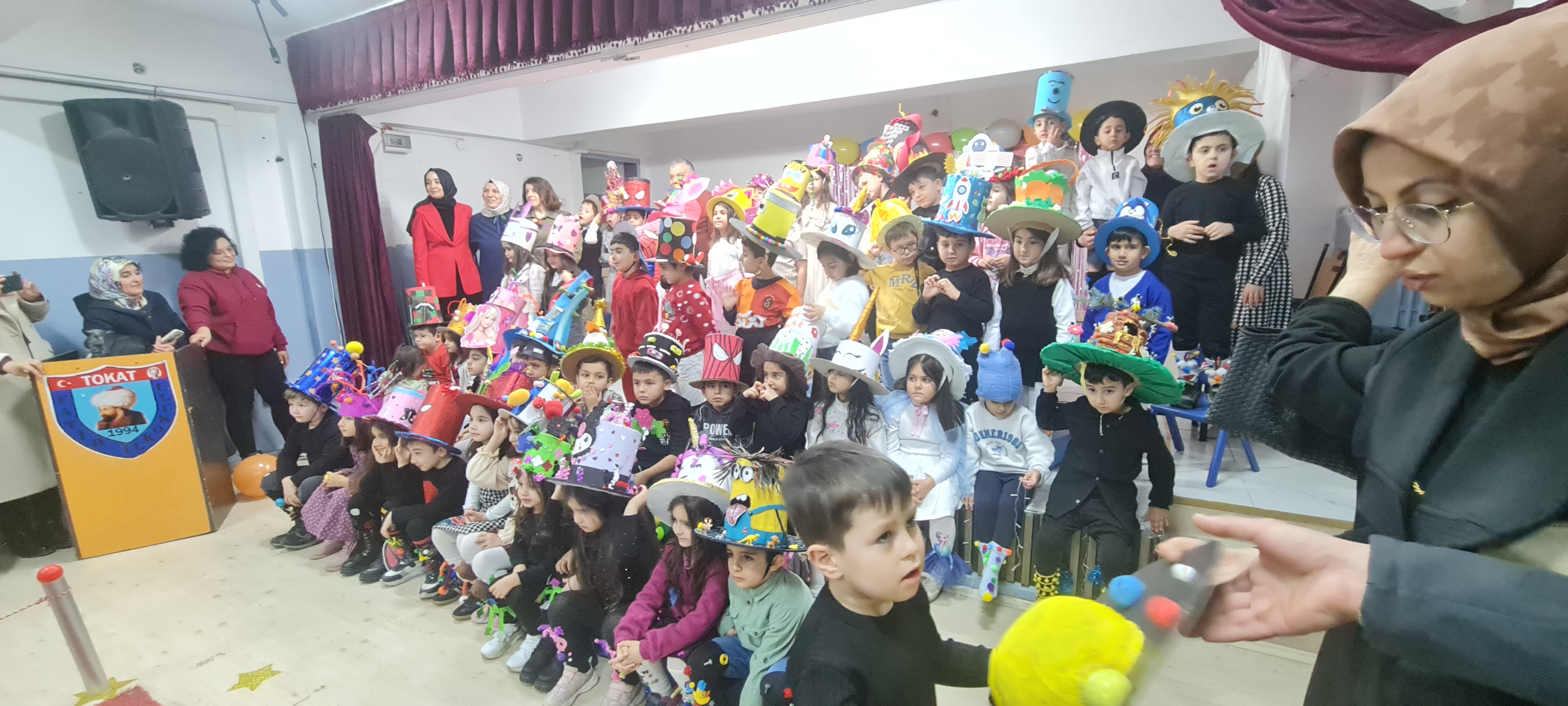 Okul öncesi öğretmenleri; Leyla Erdemir, Aysel Hızlı Yıldız ve Selma Türk’ün koordinesinde düzenlenen etkinliğe, veliler de yoğun ilgi gösterdi. Sabahın erken saatlerinden itibaren büyük bir özenle hazırlanan minik öğrenciler; el emeği göz nuru, sıra dışı şapka tasarımları ve rengarenk, desenli çoraplarıyla okul koridorunda defile yaptı.