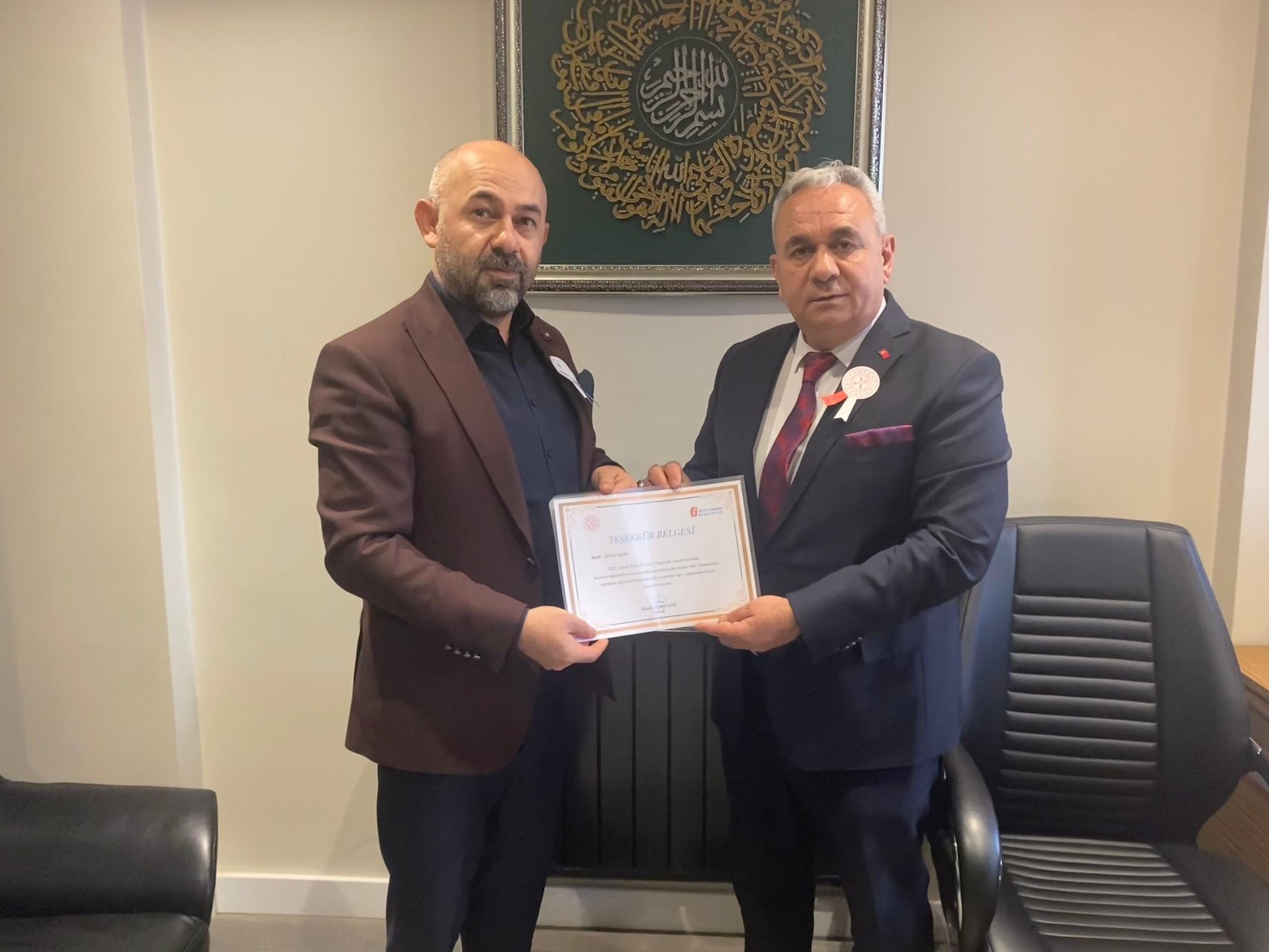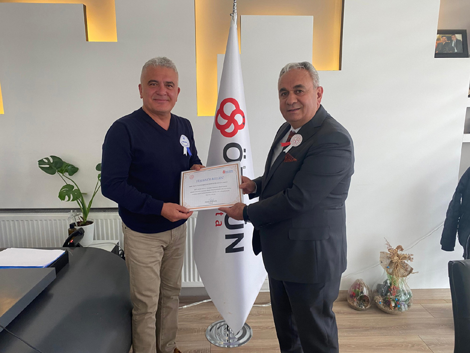 Şahinler Otomotiv İnşaat Tekstil Ltd. Şti. Yetkilisi Murat Şahin’e Teşekkür Belgesi verildi.