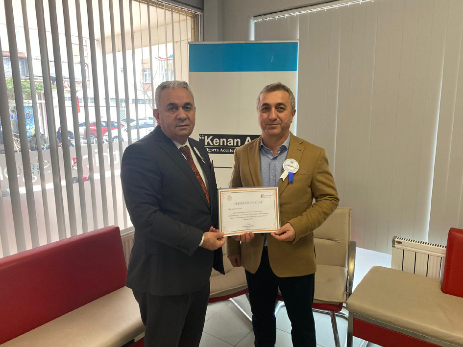 Kenan Aslan Sigorta Acenteleği sahibi Kanan ASLAN'a teşekkür belgesi verildi.
