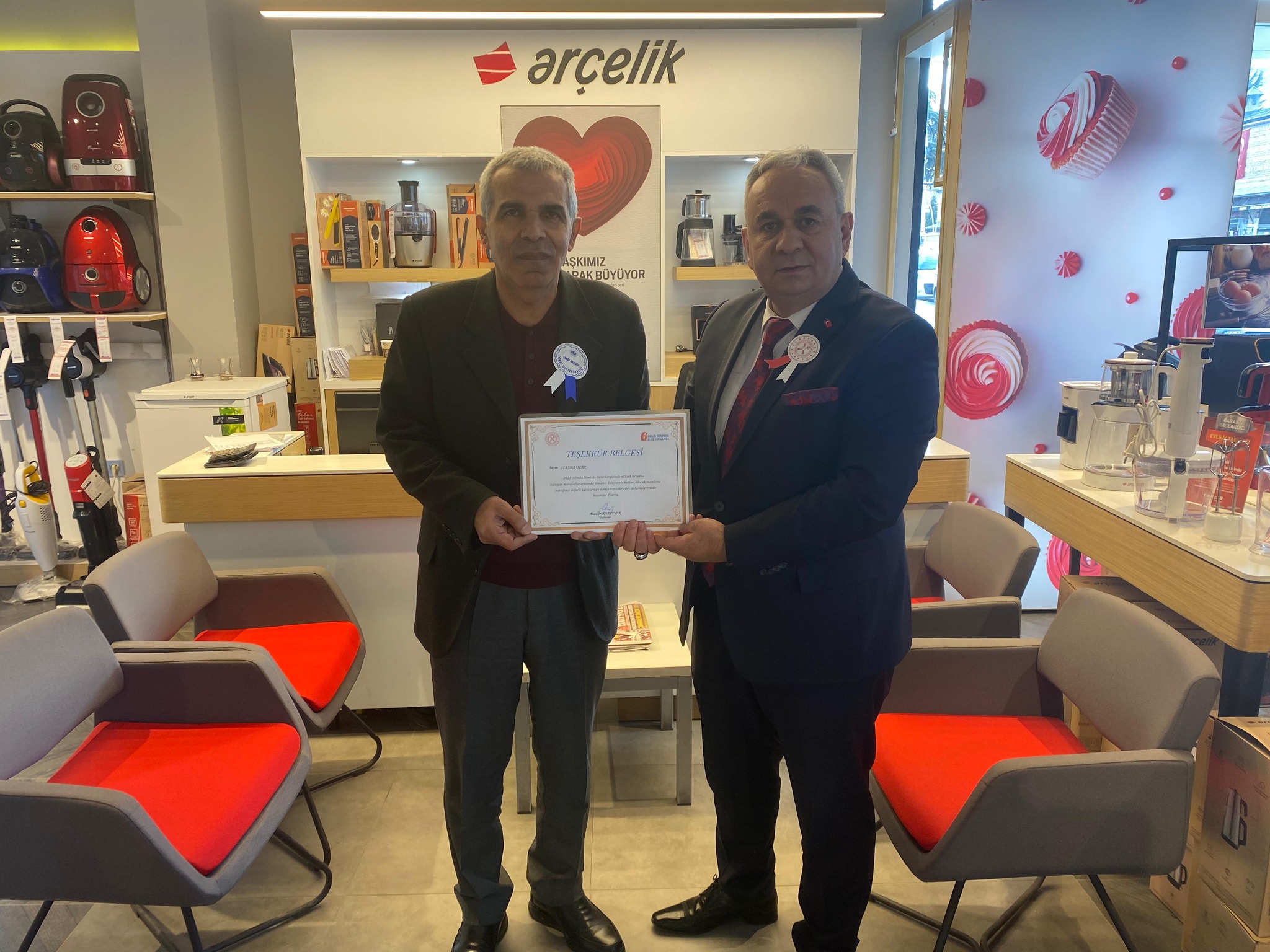 Arçelik Bayii Sahibi Serdar UÇAR'a teşekkür belgesi verildi.