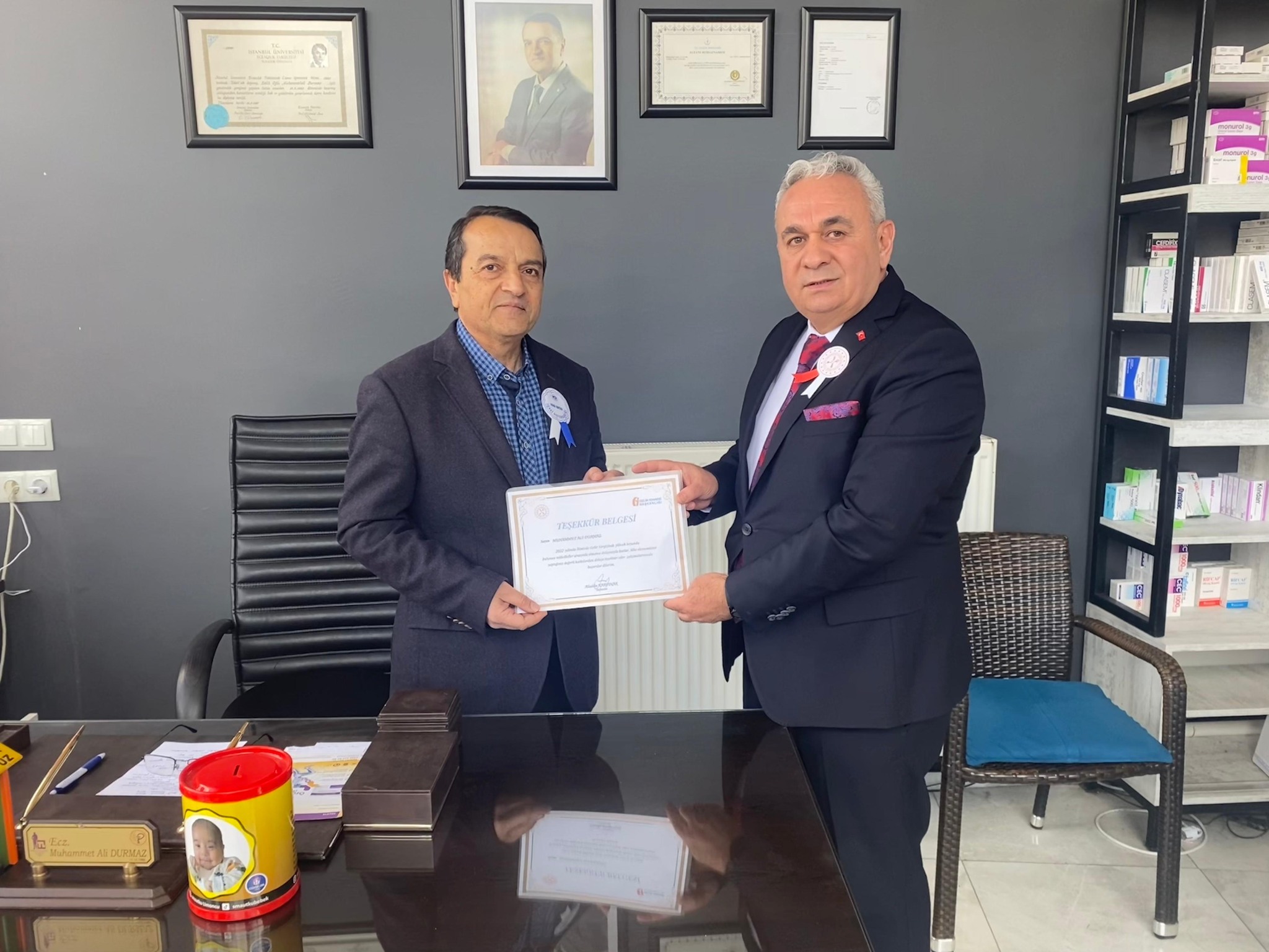 Şifa Eczanesi sahibi Ecz. Muhammet Ali DURMAZ'a Teşekkür Belgesi verildi.
