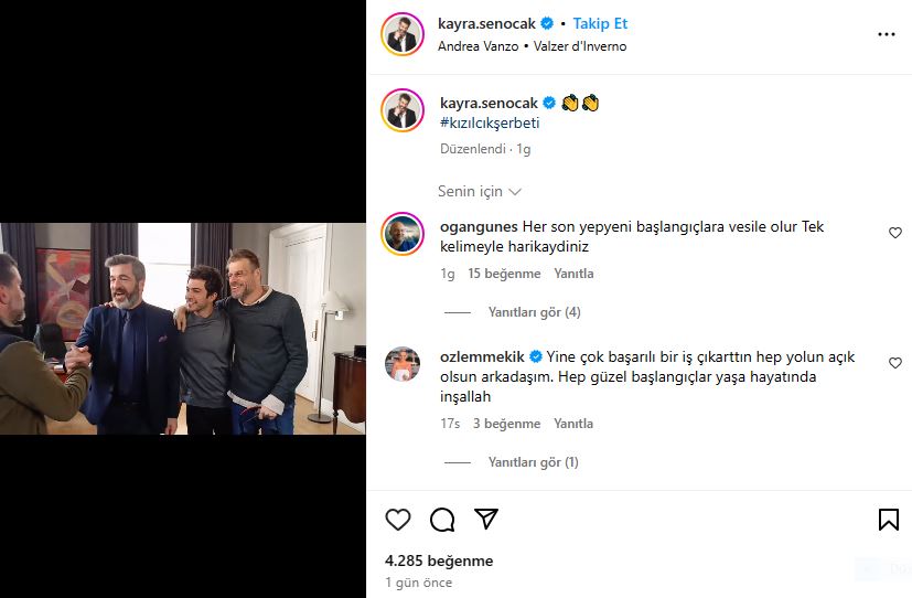 Son sahneleri yayınlanan Kayra Şenocak, Instagram hesabından setten eğlenceli kareleri paylaşarak şu sözlerle veda etti: "Güzel ve keyifli bir yolculuğun sonuna geldik bugün. Uzun yolculukları severim, çünkü mutlaka birilerine denk gelip bir şeyler öğrenirsin. Bu yolculukta da elbette öğrendiklerim oldu. Heybemi doldurdum ve gidiyorum, bana eşlik eden tüm yol arkadaşlarıma, özellikle de beni evlerinde ağırlayan tatlı Şerboculara teşekkür ediyorum. Çok yakın zamanda yeni yollarda bambaşka heyecanlarla yeniden buluşacağız. O zamana kadar kendinize iyi bakın. Hoşça kal, Ertuğrul İslamoğlu." dedi.