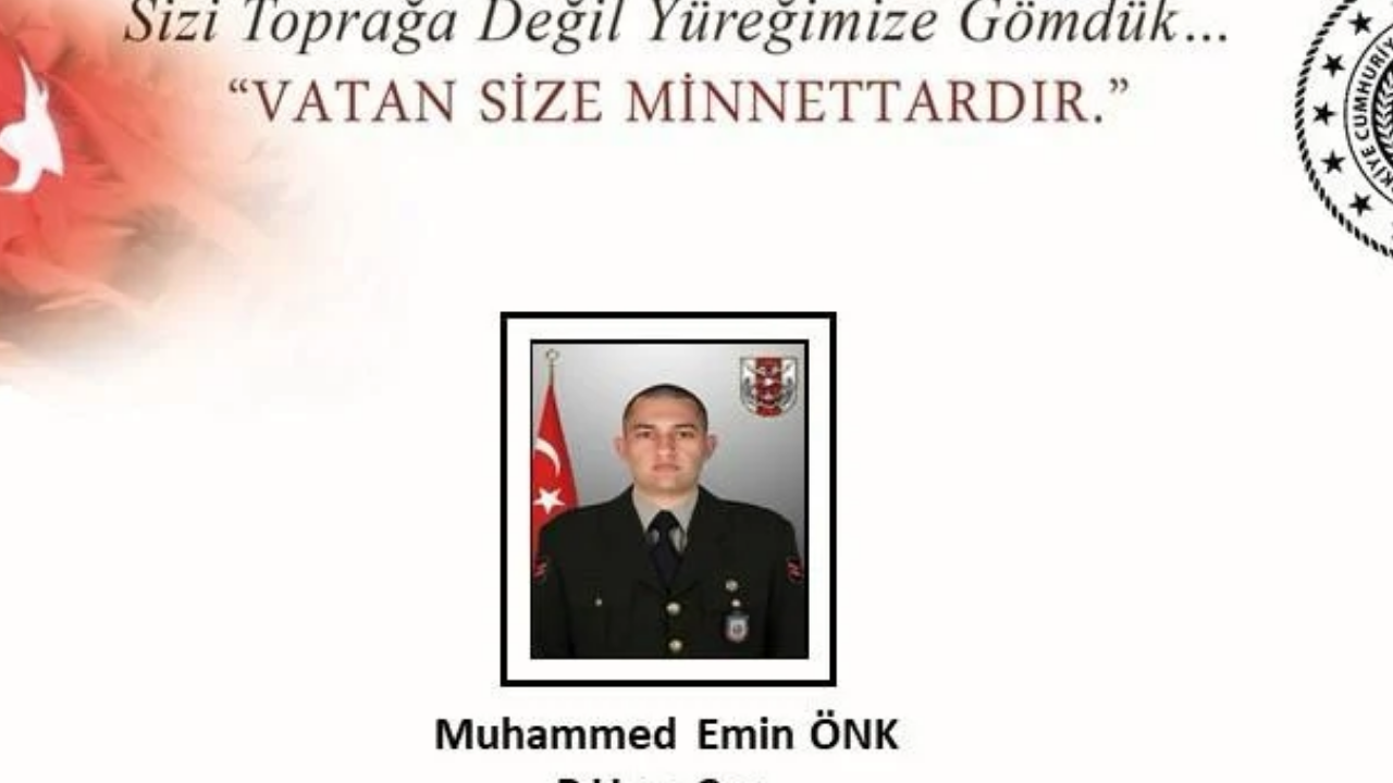 Şehit Muhammed Emin Önk'ün ailesine, yakınlarına ve Türk Silahlı Kuvvetleri'ne başsağlığı diliyoruz.