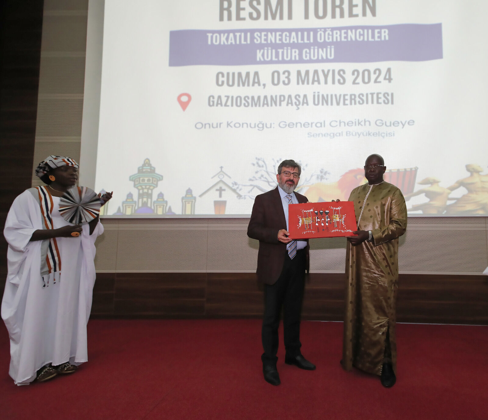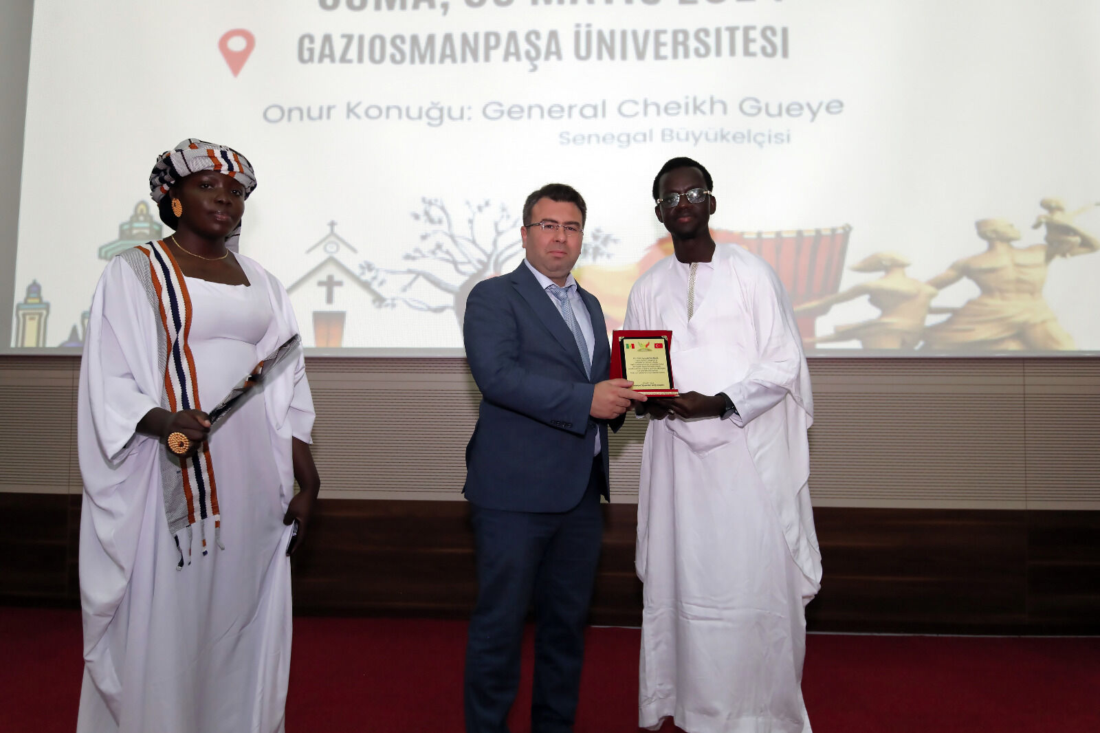 Etkinlik sonrasında Tokat Gaziosmanpaşa Üniversitesi ‘nde eğitim gören Senegalli öğrenciler Senegal Ankara Büyükelçisi Cheikh Gueye ve Elçi Müsteşar Cheikh Diallo’ya, Üniversitenin Uluslararası Öğrenci Koordinatörü Dr. Öğr. Üyesi Şahin Sözen’e ve TÖMER Müdürü Dr. Öğr. Üyesi Ahmet Akgül’e plaket ve hediye takdiminde bulunuldu.