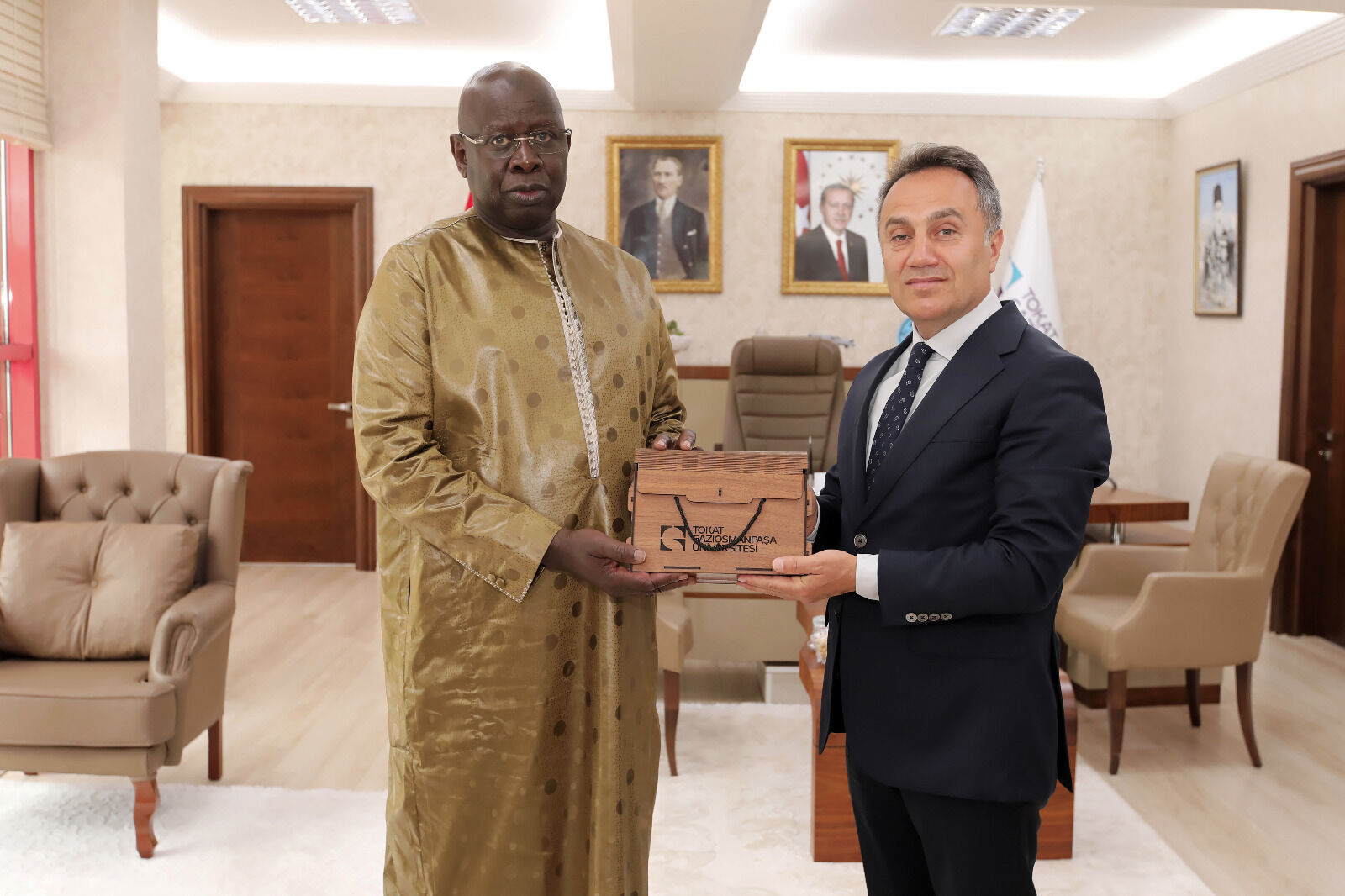Senegal Ankara Büyükelçisi Cheikh Gueye ve Elçi Müsteşar Cheikh Diallo ve Senegal heyeti Tokat Gaziosmanpaşa Üniversitesi Rektörü Prof. Dr. Fatih Yılmaz’ı ziyaret etti.