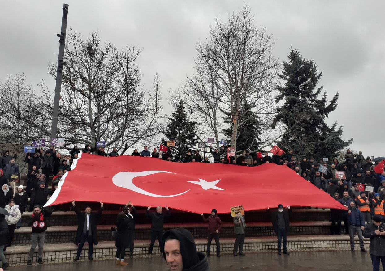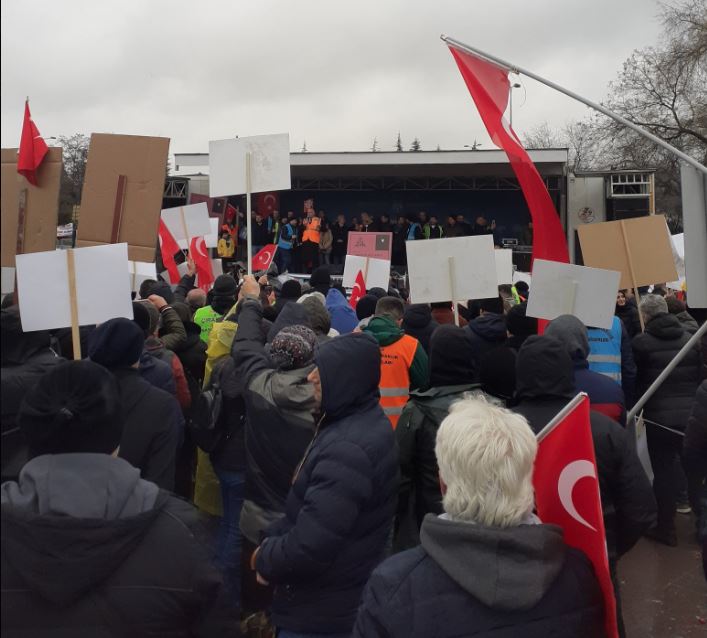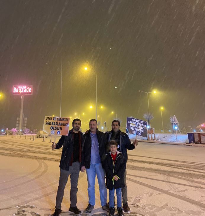 Zorlu hava şartlarına rağmen hak arayışı için çıkacak gür sese destek vermek isteyen mağdurlar otobüslere atlayarak kara fırtınaya da meydan okudu.