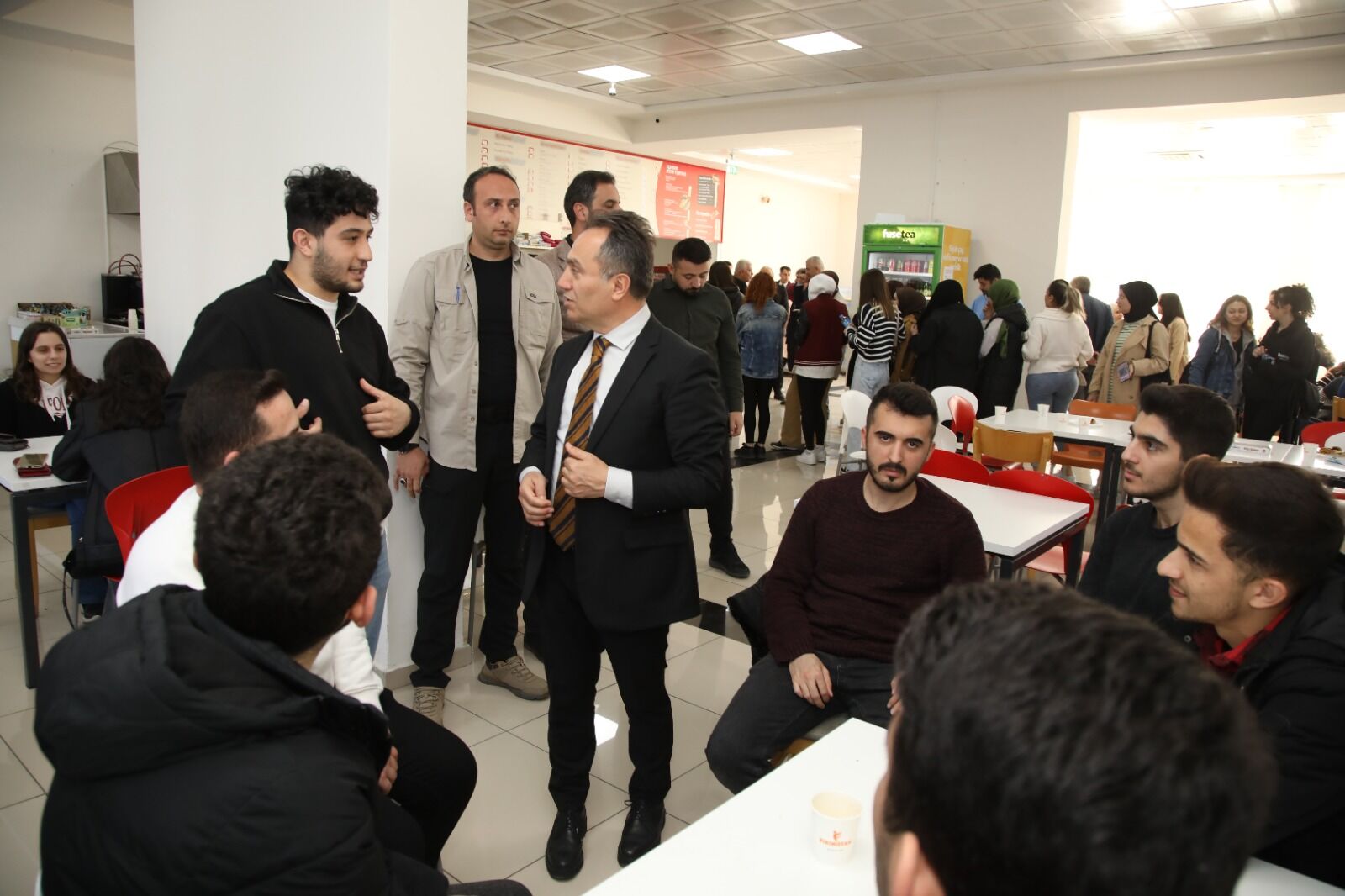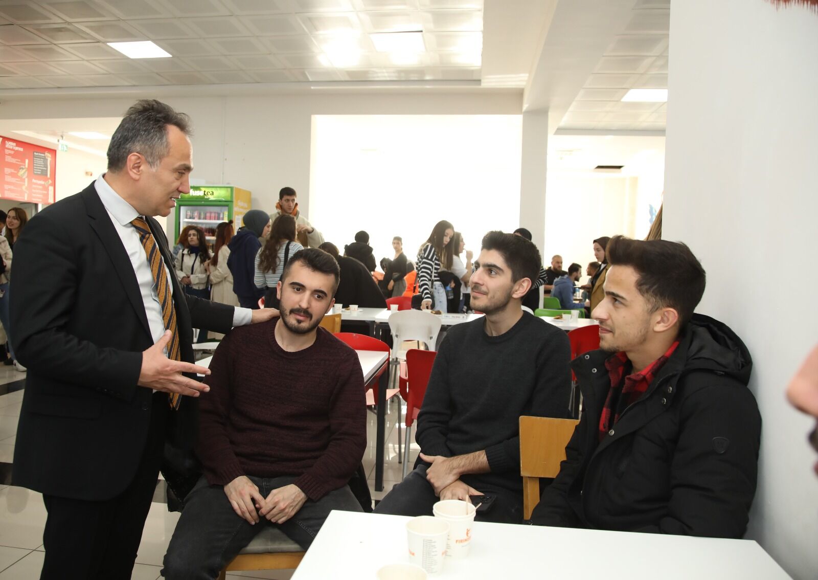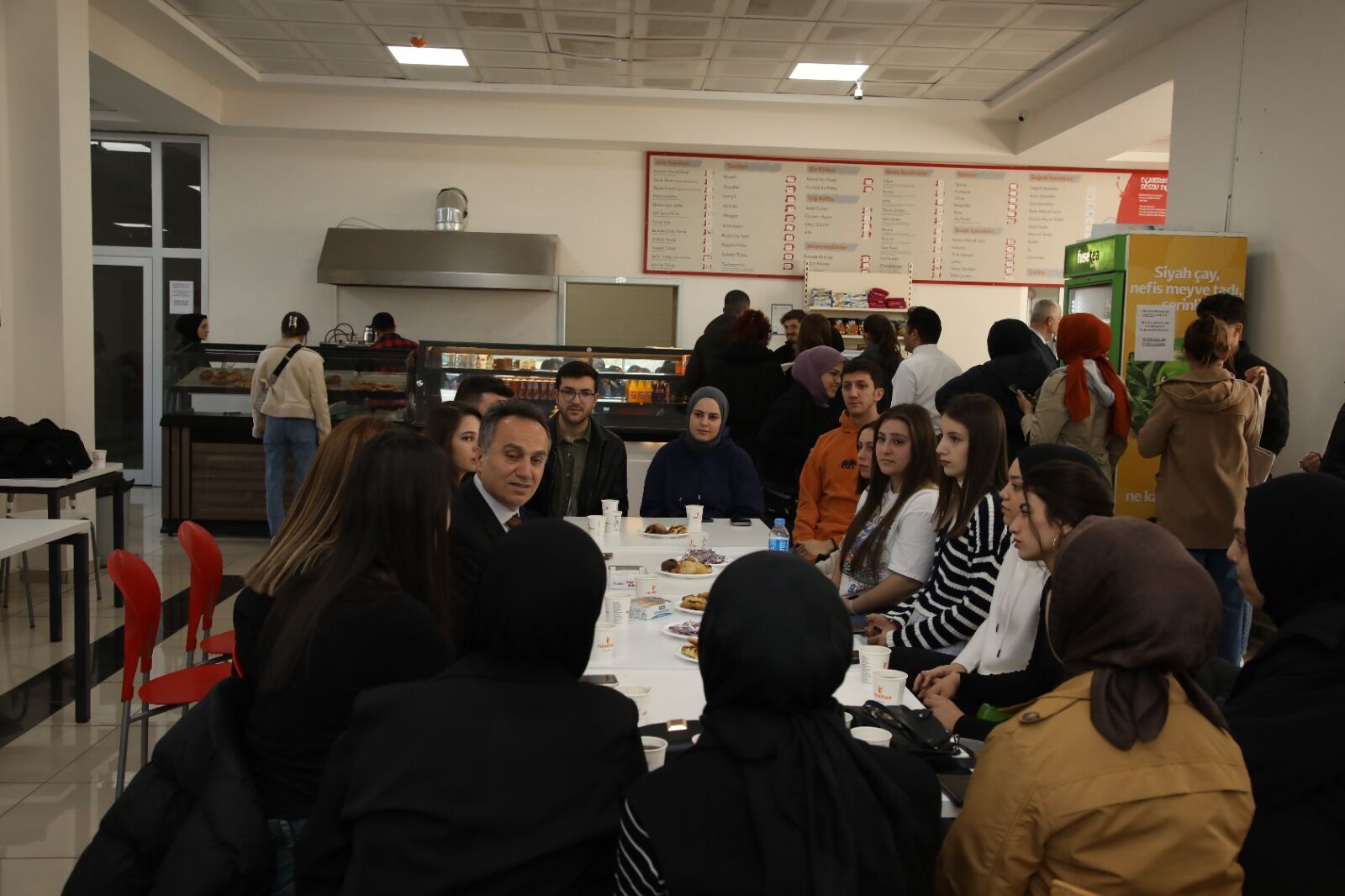Daha önce Fen Edebiyat Fakültesi kantinini ziyaret eden Rektör Prof. Dr. Fatih Yılmaz, kantin sohbetleri kapsamında öğrencilerimizle buluşmaya devam edecek.