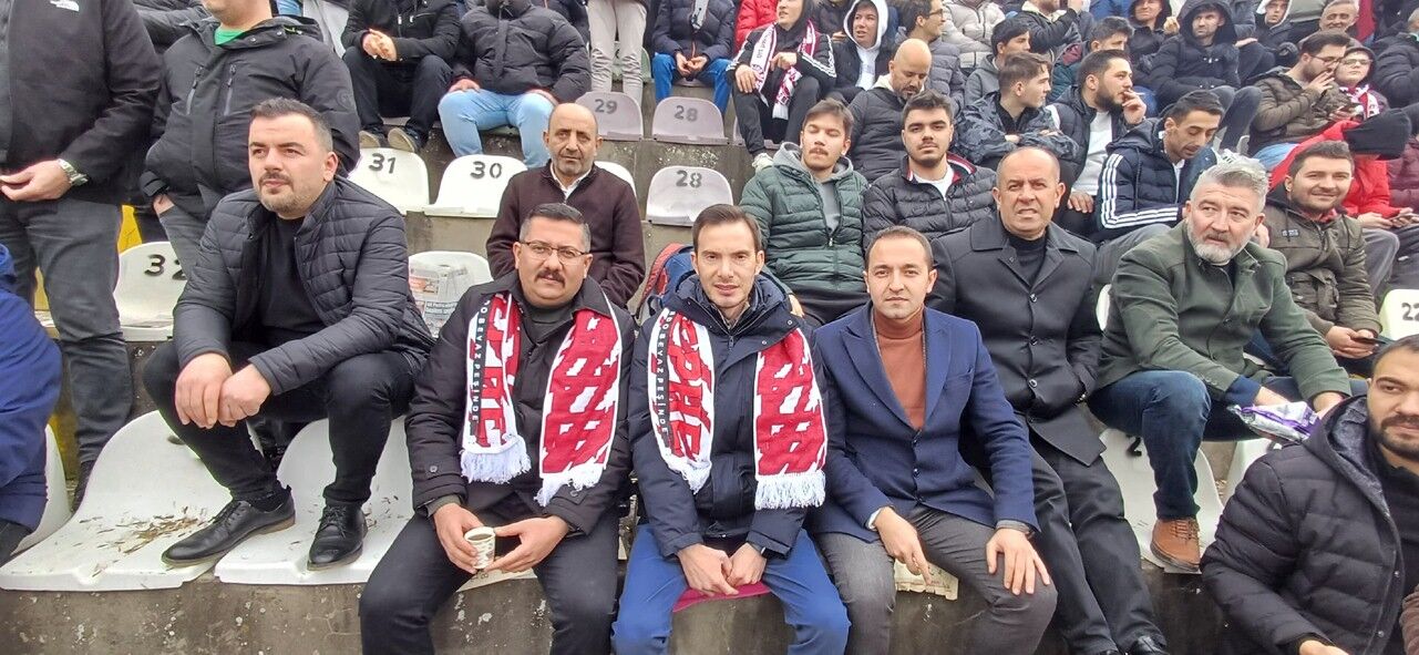 Tokat Belediye Başkanı olmak için MHP'den aday olan Mehmet Kemal Yazıcıoğlu, MHP Tokat İl Başkanı Mustafa İpek ve Tokat Ülkü Ocakları Başkanı Oğuzhan Yay ile birlikte maçı taraftarlar arasında izledi.