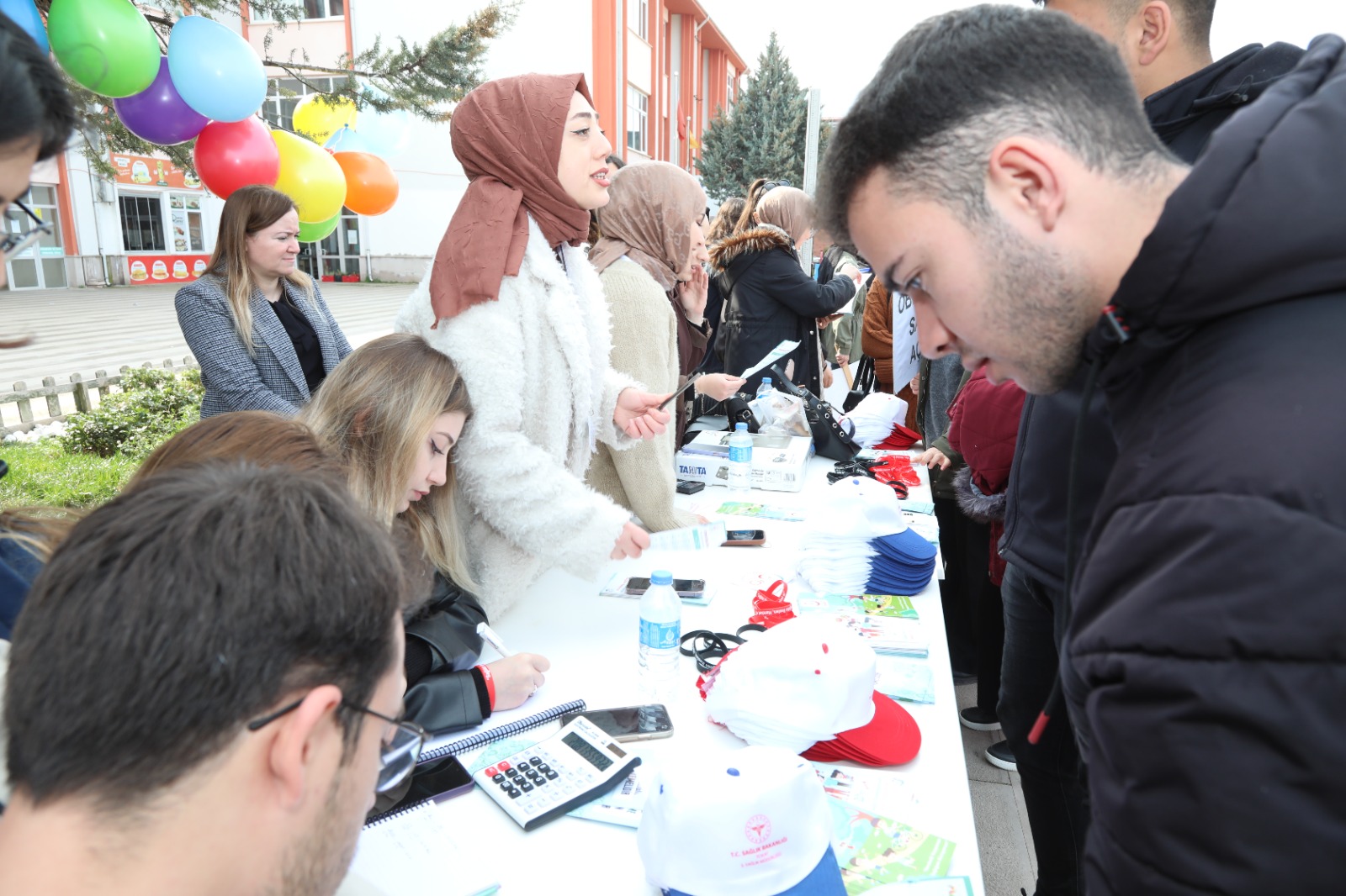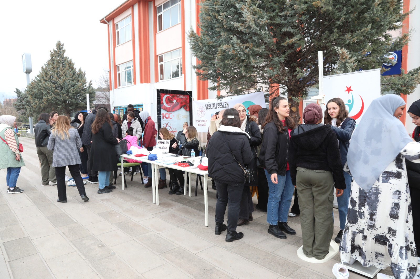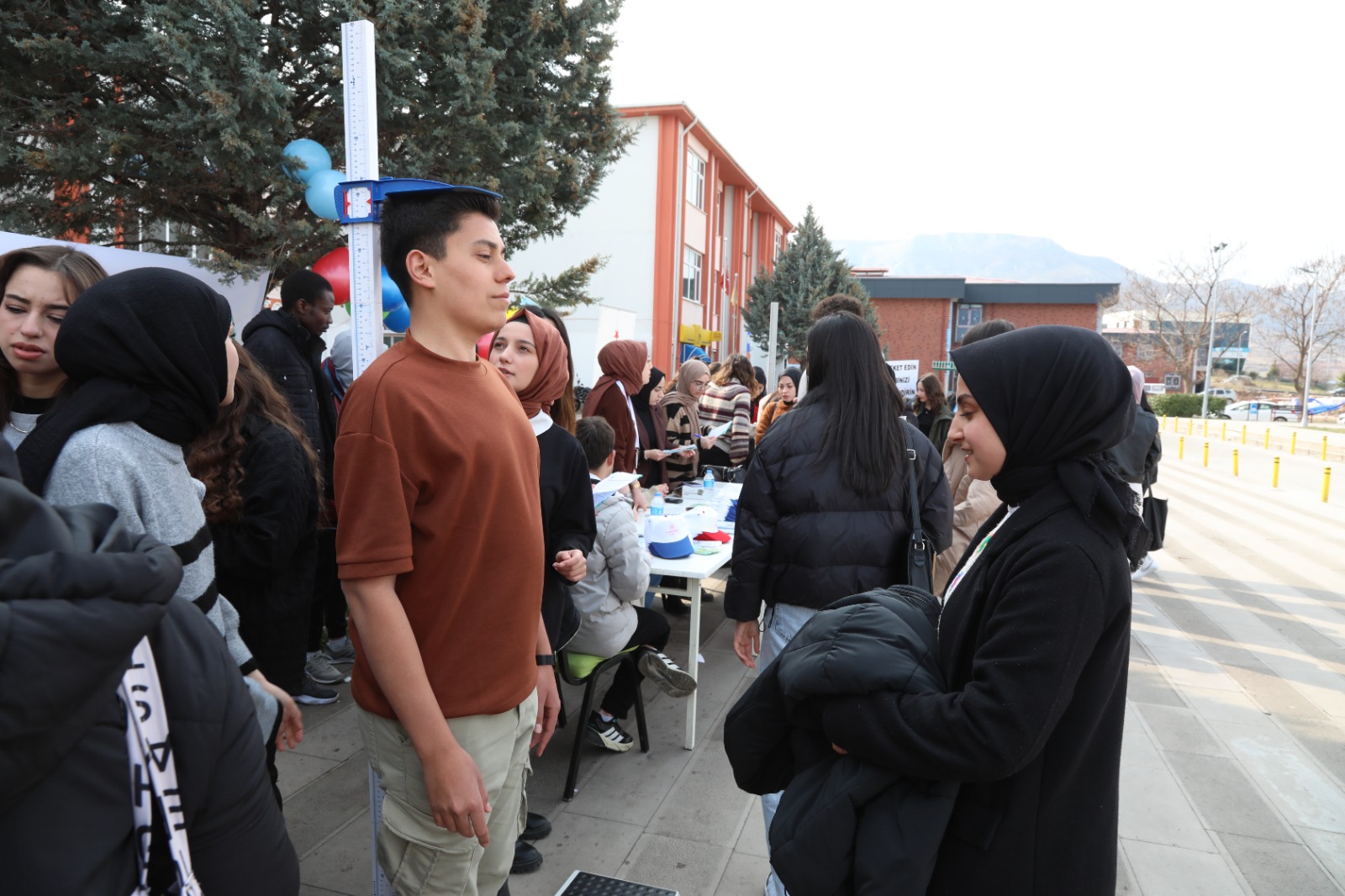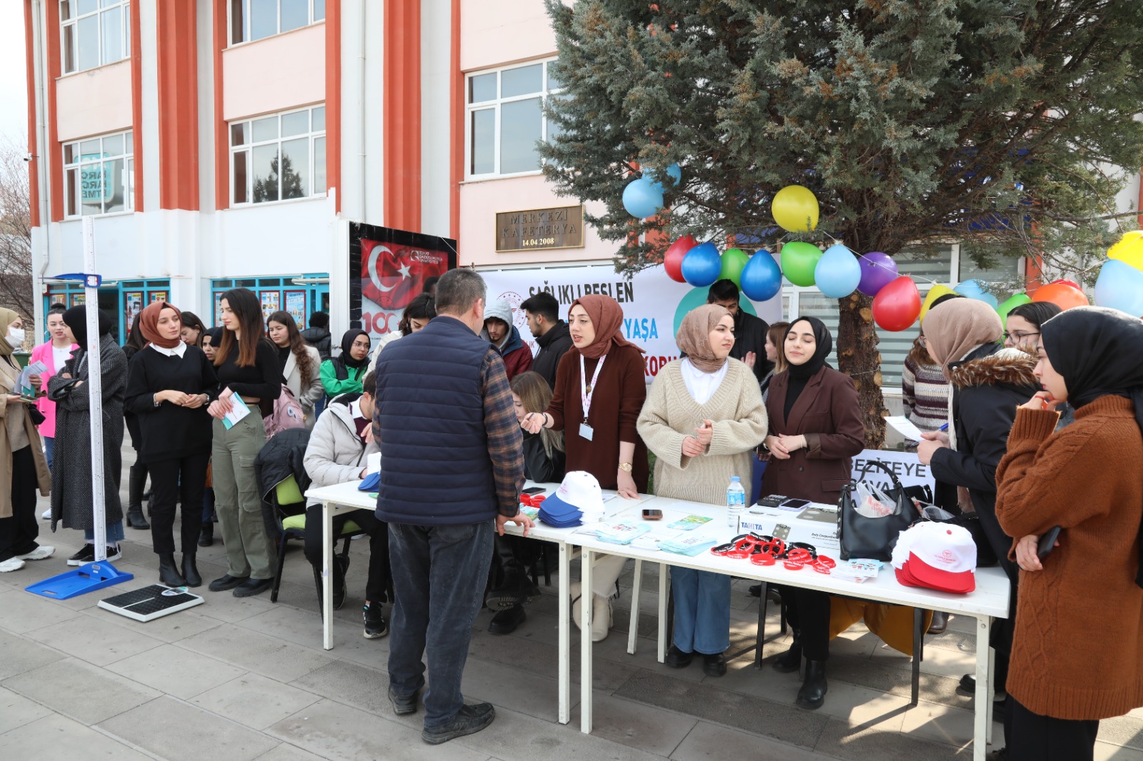 İl Sağlık Müdürlüğü personelinin de yer aldığı stantta boy, kilo endeks ölçümleri de yapıldı.