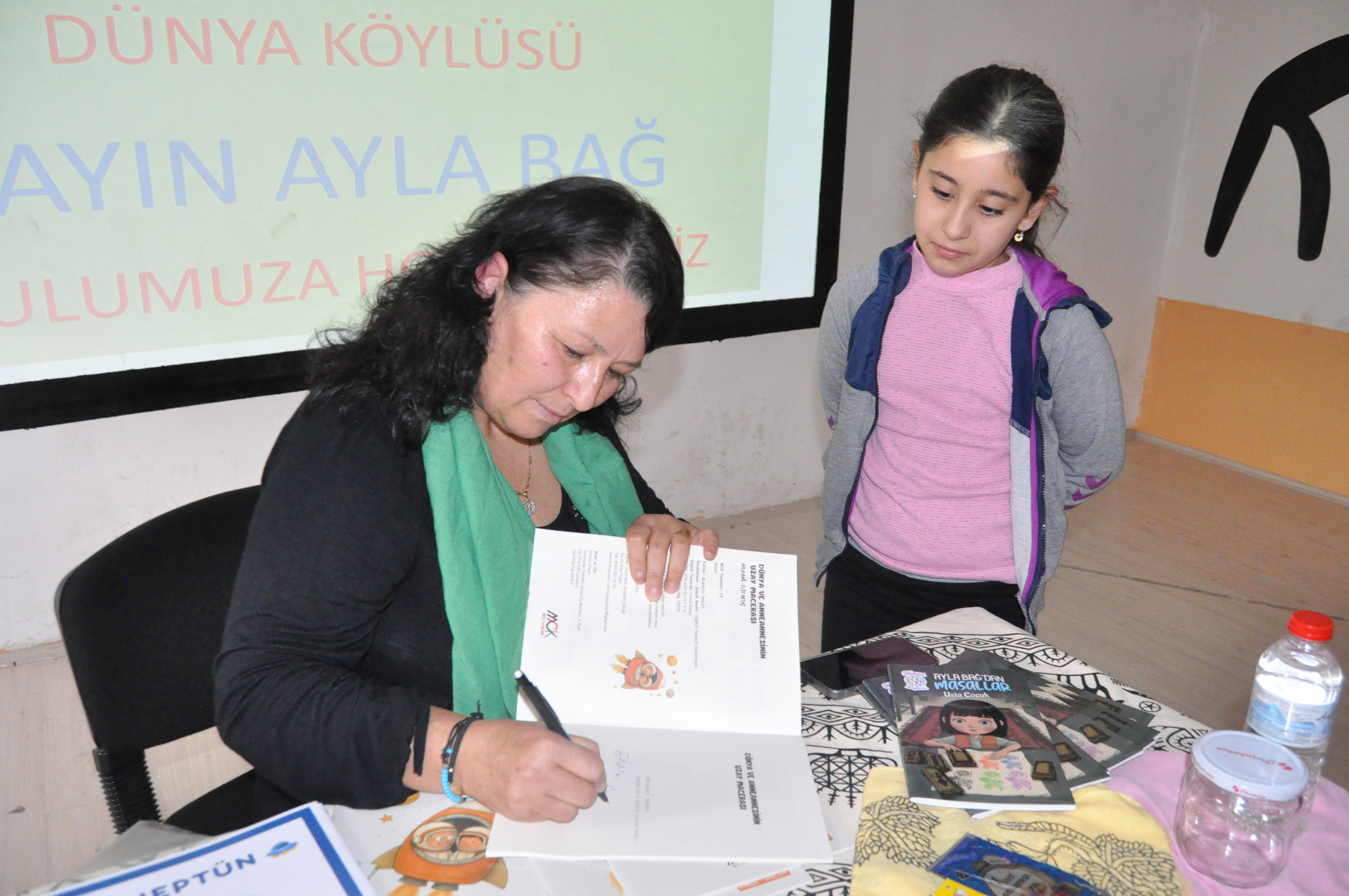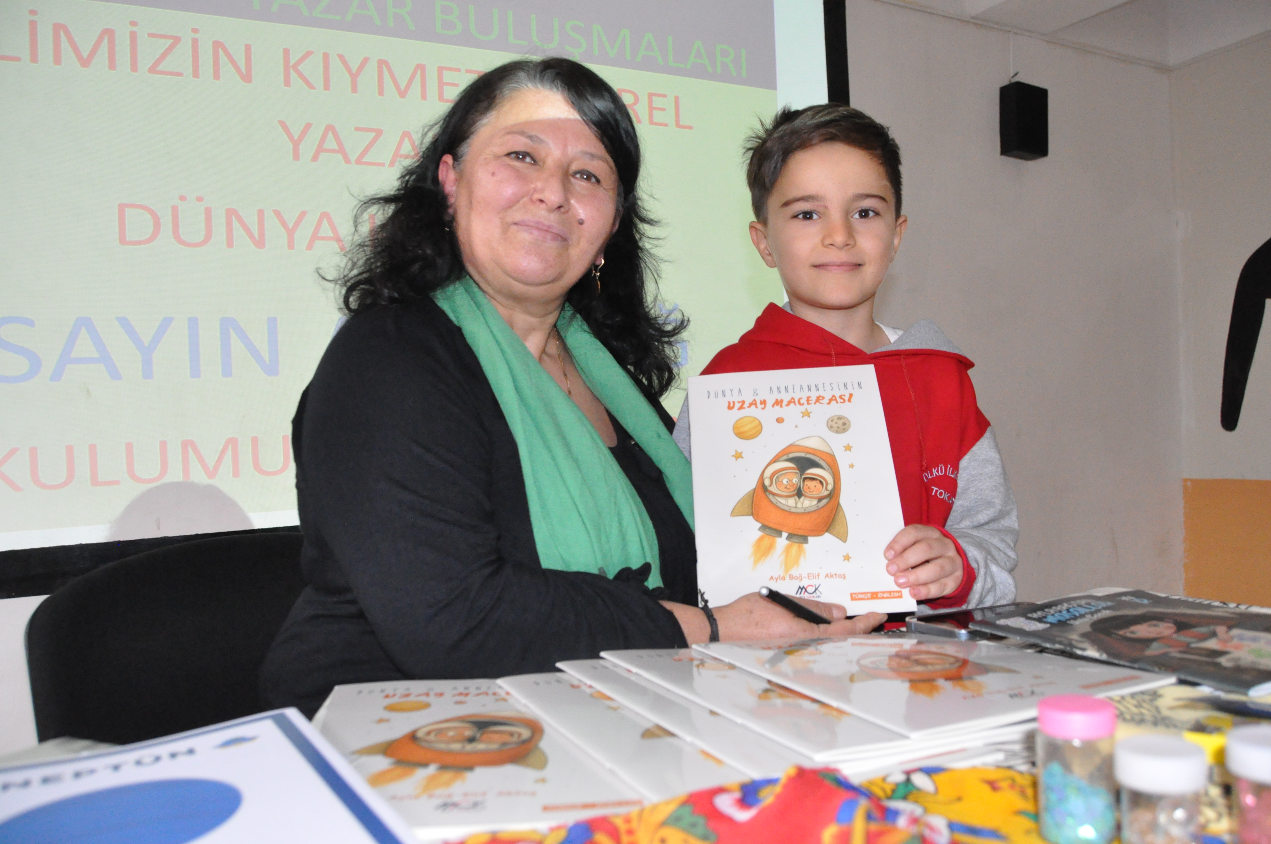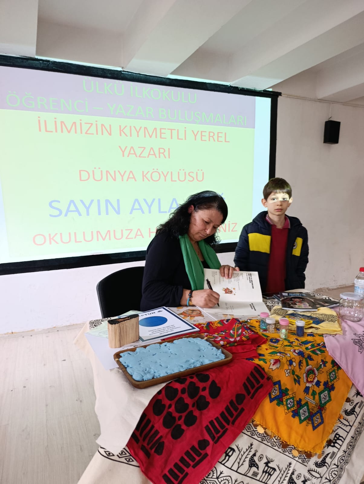 Tokat Merkez Ülkü İlkokulu, “Yazar-Öğrenci Buluşmaları” etkinliğinde ‘Dünya Köylüsü’ mahlasıyla bilinen Tokat’ın yerel yazarlarından sosyolog Ayla Bağ’ı konuk etti. Yazar Ayla Bağ’ın geçen sene yayınlanan “Ayla Bağ’dan Masallar Usta Çocuk” kitabı ile bu sene yeni yayınlanan “Dünya ve Anneannesinin Uzay Macerası” kitabı üzerine öğrencilerle sohbet ortamı oluşturuldu.