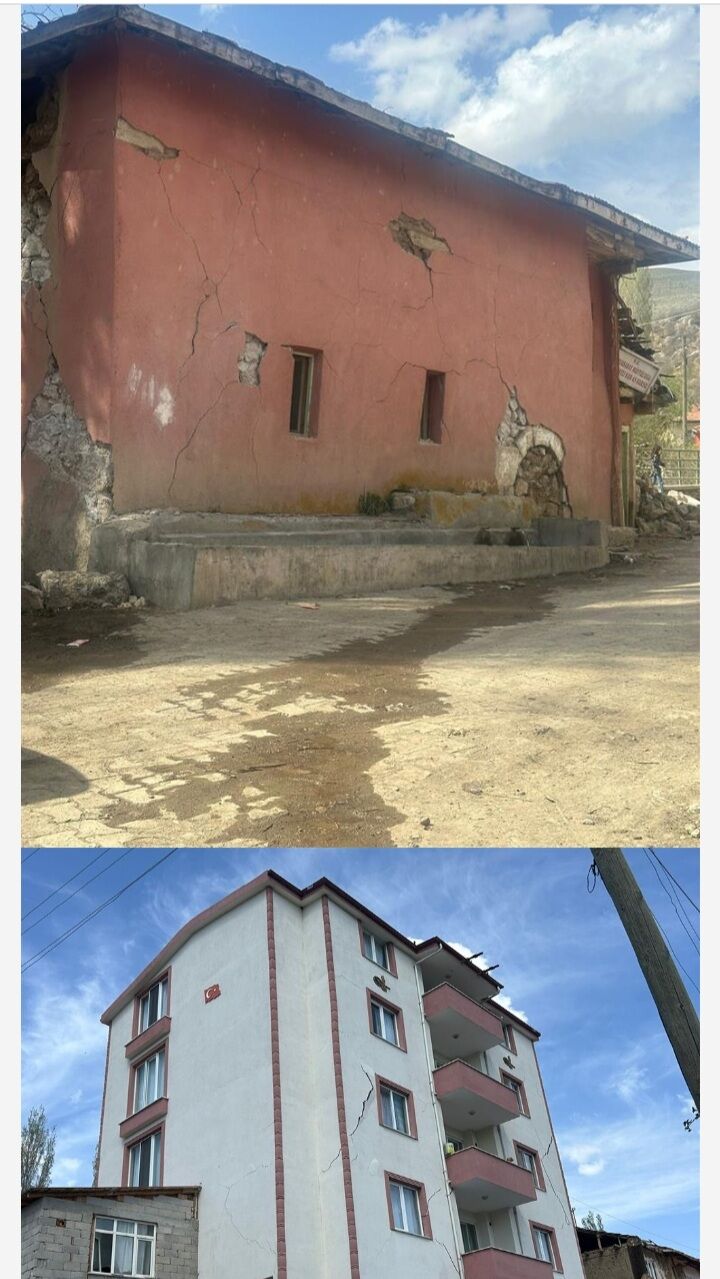 Buğdaylı köyünde yapılan tespitte, ahşap ve kerpiç yapıların haricinde köyde bulunan 5 katlı betonarme yapıda kesme çatlakları ve sıva çatlakları gözlemlenmiştir.