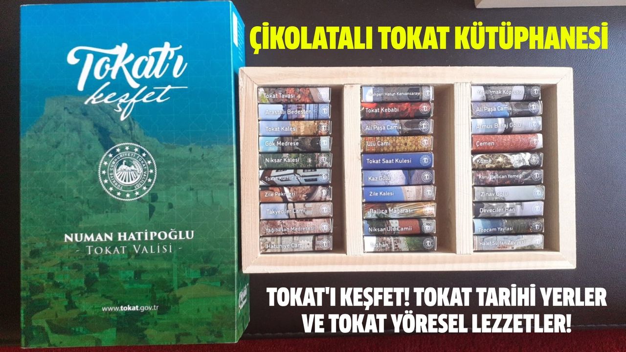 Tokat Valisi Numan Hatipoğlu'nun Tokat'ta göreve başlaması sonrası, Tokat'ın tanıtımını da öne çıkaracak şekilde hazırlattığı Kütüphaneli Çikolata beğeni topladı. Tokat'ın tarihi yerleri, Tokat gastronomisi zenginliğini gösteren Tokat yöresel lezzetlerine dair fotoğraf ve özet bilginin yer aldığı çikolata kabı içindeki çikolata yendikten sonra güzel bir arşiv kaynağı olarak kenarda tutuluyor.