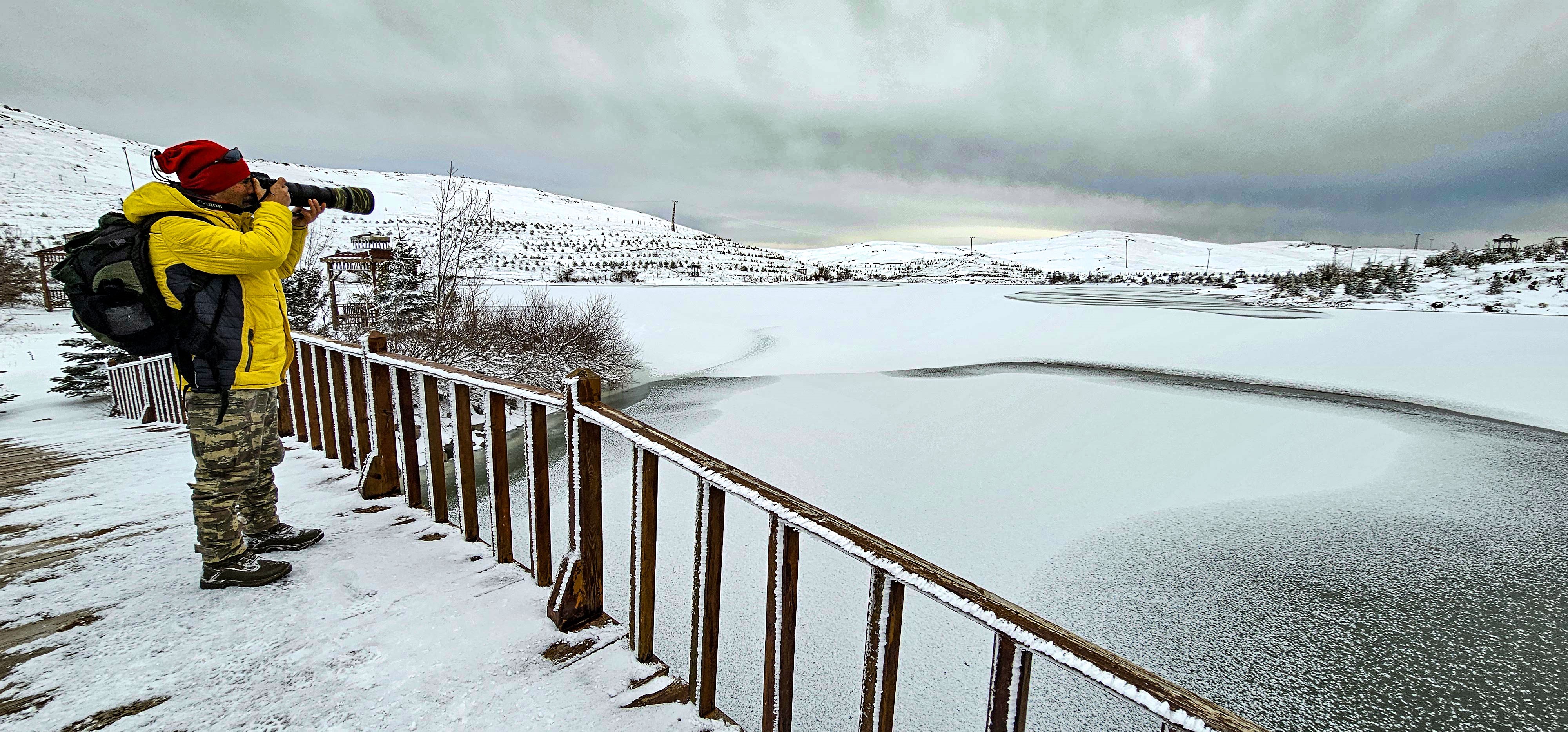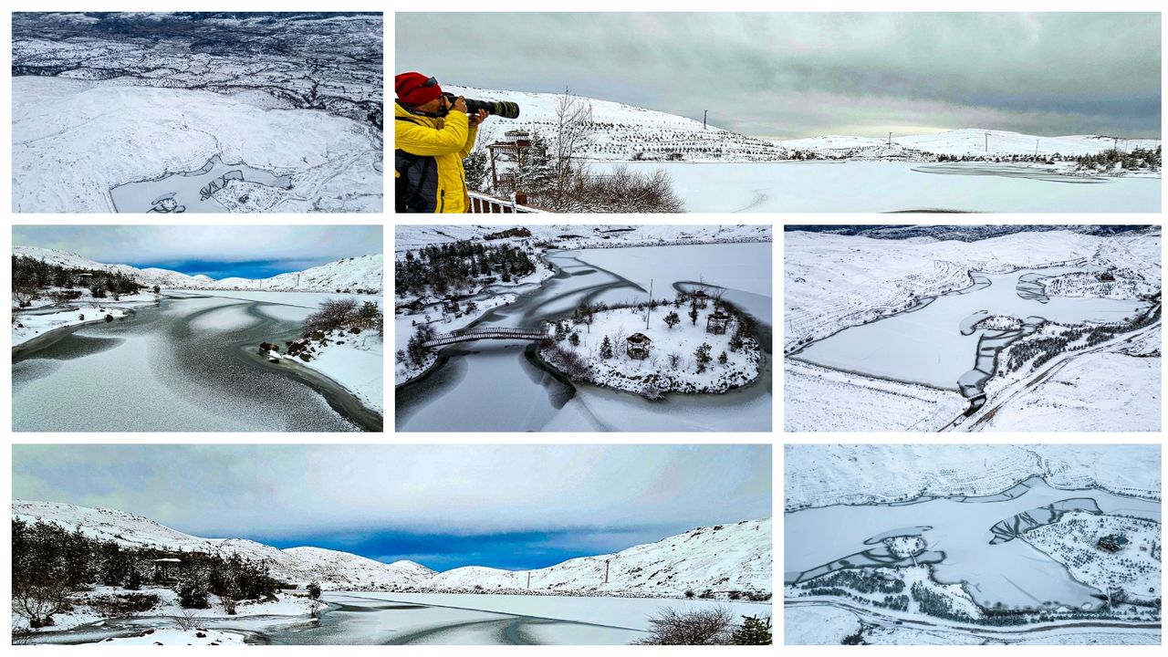 Soğuk hava şartları, göletin çevresinde buzlu bir örtü oluşturarak görsel bir şölen sunarken, aynı zamanda kışın etkisini net bir şekilde hissettirdi.
