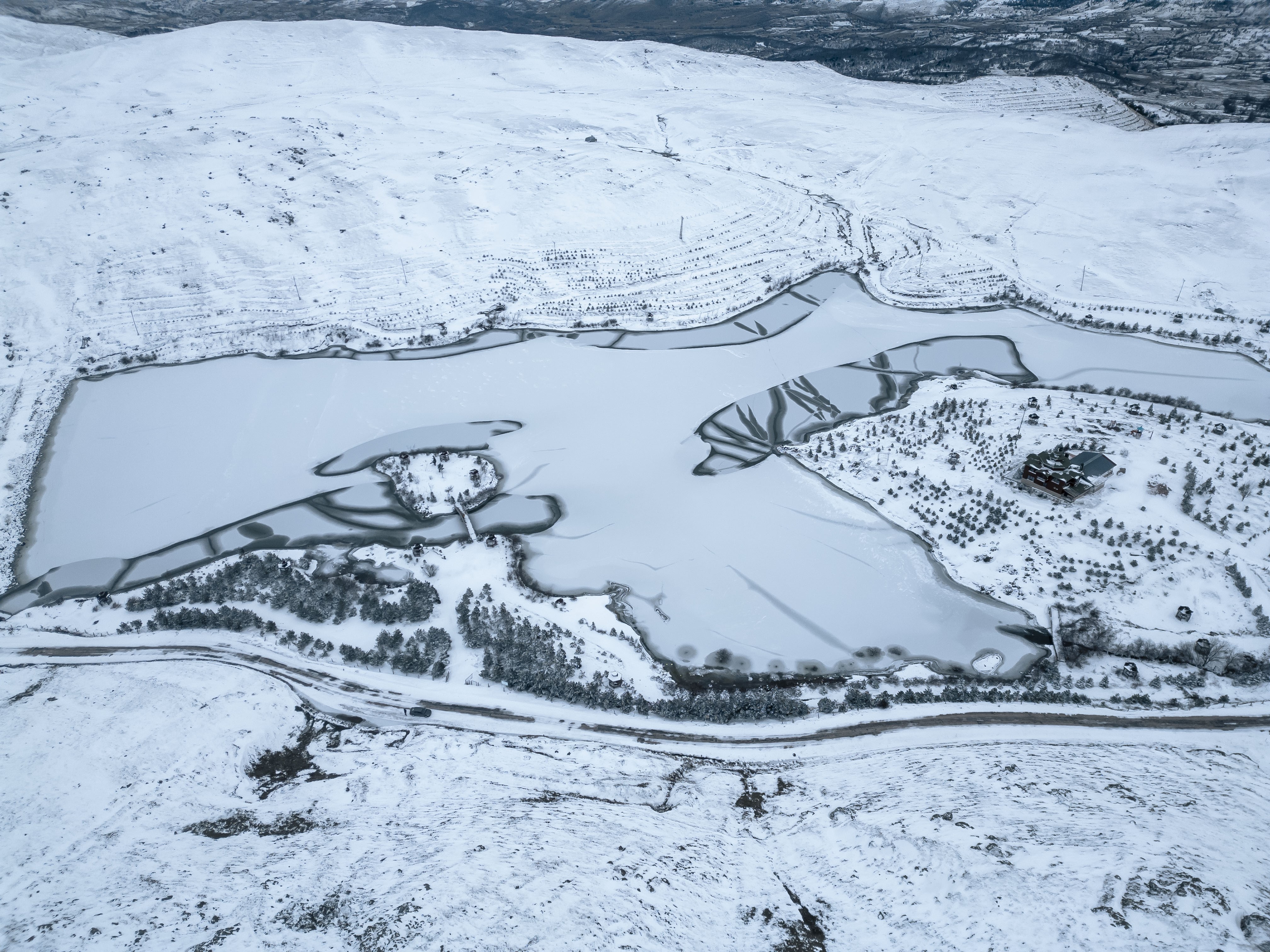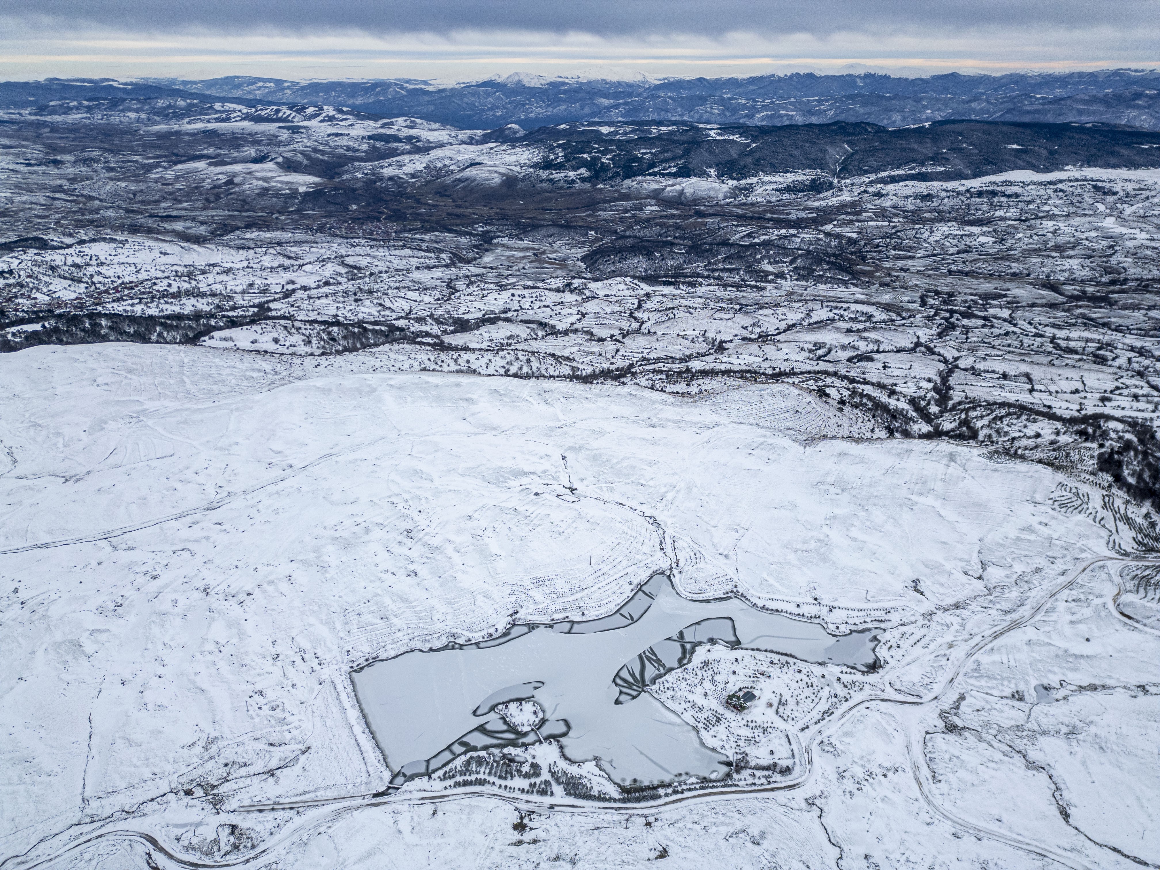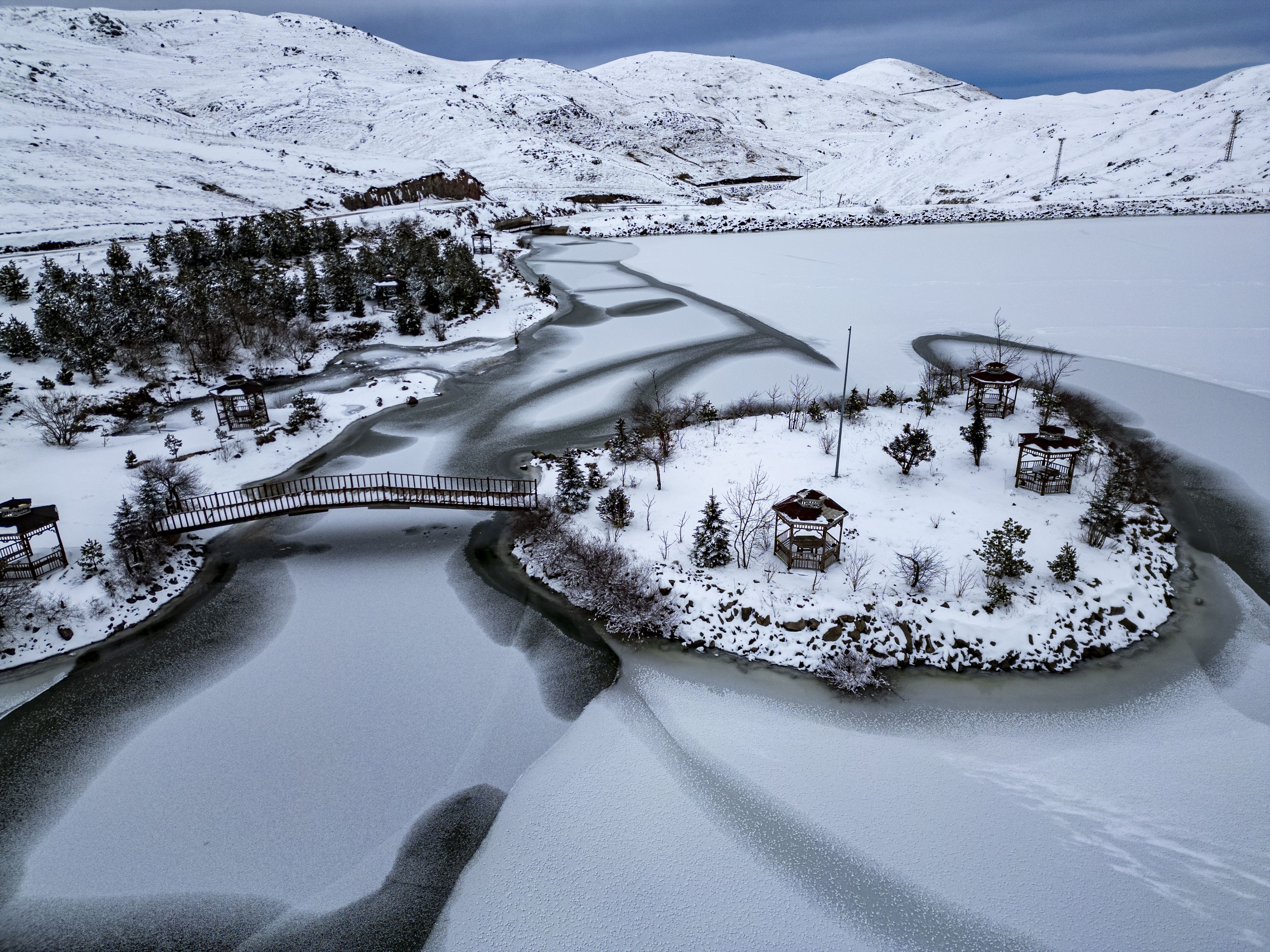 Tokat'ın çatı katındaki donan gölet, hayran bırakan kış tablosuna dönüştü
