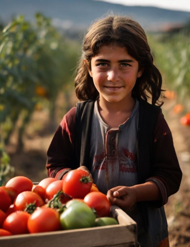 Tokat'ın meşhur domatesilerini tarladan toplayan Tokatlı küçük bir kız