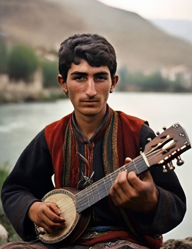 Yeşilırmak kenarında müzik yapan Tokatlı bir genç.