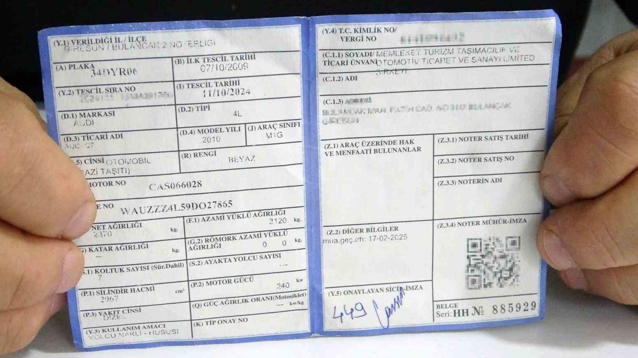 Giresun'un Bulancak ilçesinde galeriden noter satışıyla satın aldığı ve yaklaşık bir yıldır sorunsuz kullandığı Audi Q7 marka lüks cipine, gümrük tarafından çıkarılan yakalama kararı nedeniyle el konulan iş adamı şaşkınlık yaşadı. Daha önce 19 kez satışı yapıldığı öğrenilen araç, polis kontrolünde yediemin otoparkına çekildi.