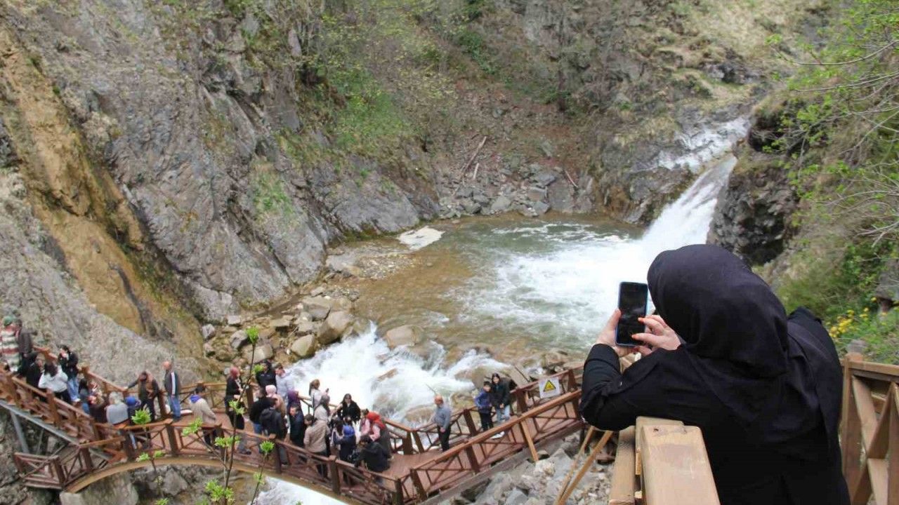 Giresun’daki Göksu Deresi’nde büyüklü küçüklü dört gölden oluşan Mavi Göl ve Göksu Travertenlerinin de içinde bulunduğu Kuzalan Tabiat Parkı’nda bayram tatili yoğunluğu devam ediyor.