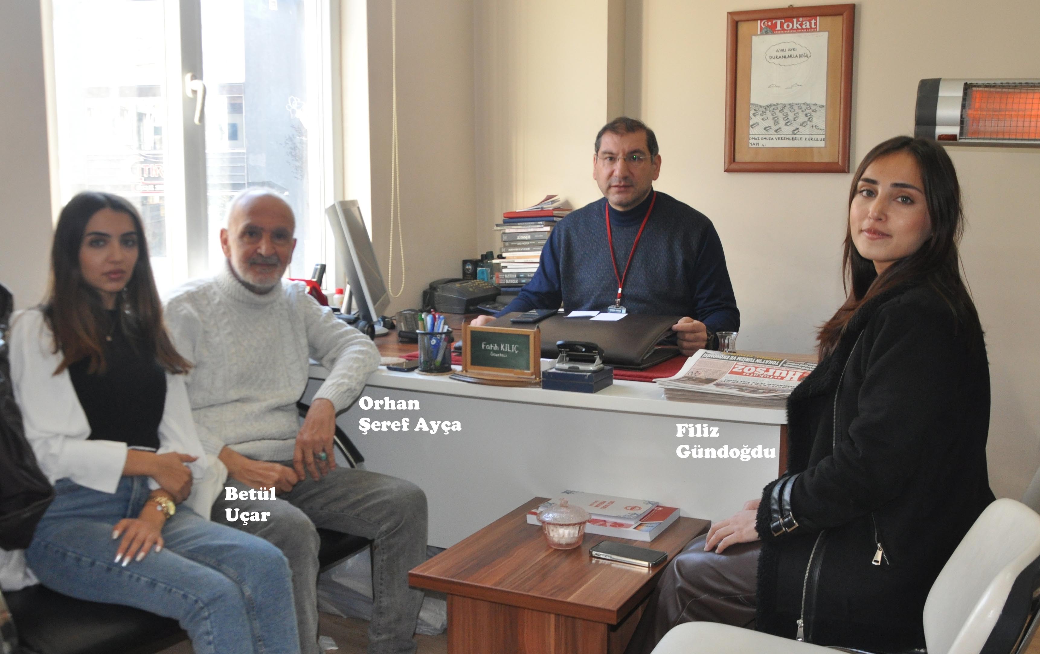 Gözüm Aydın Tokat’a Gitmek Gerek filminin senaryo yazarı ve yönetmeni Orhan Şeref Ayça, beraberinde Asistanı Filiz Gündoğdu, Film ve Tiyatro Koordinatörü Betül Uçar ile Tokat Hürsöz gazetesi ziyaretinde Sorumlu Yazı İşleri Müdürü Fatih Kılıç’a filmin gala etkinliklerine dair bilgiler verdi.