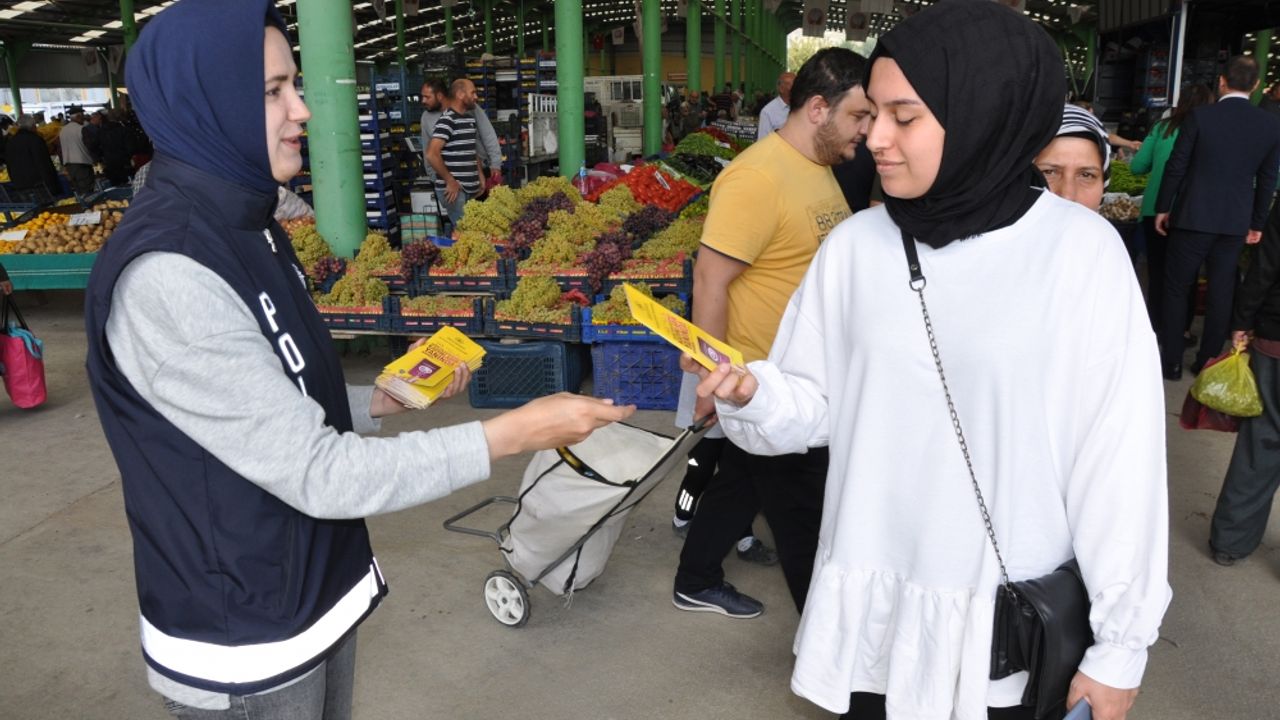 AMASYA (AA) - Gümüşhacıköy İlçe Emniyet Müdürlüğü ekiplerince, semt pazarında Kadın Destek Uygulaması (KADES) hakkında bilgilendirme yapıldı.