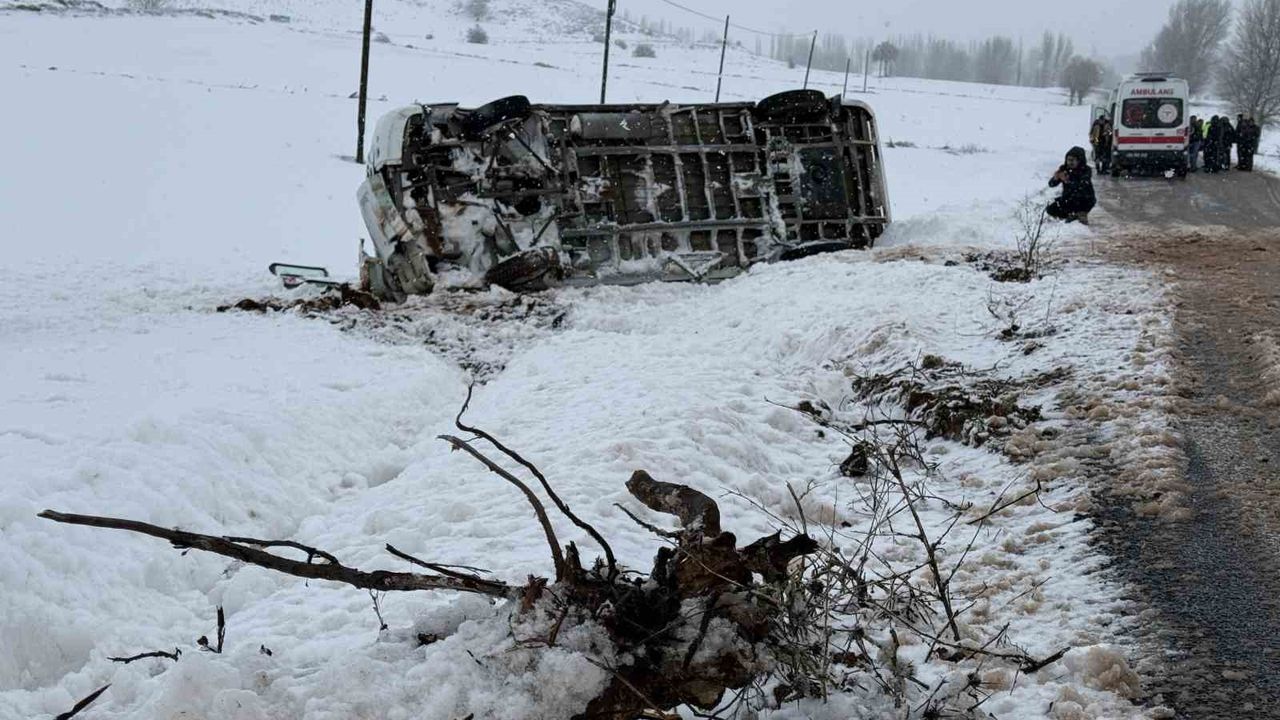 Sivas'ta öğrenci servisi kar ve yoldaki buzlanma nedeniyle şarampole devrildi. Kazada sürücü ve 13 öğrenci yaralandı.
