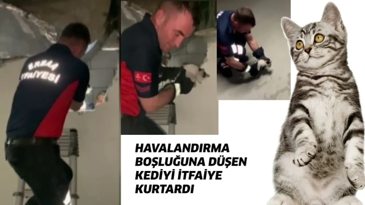 Ekipler, havalandırma boşluğunda sıkışan yavru kediyi, duvarı kırarak yaklaşık 1 saatlik çalışmayla kurtardı.