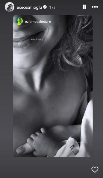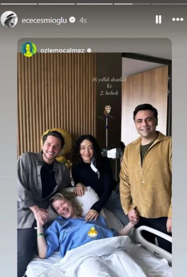 Güzel oyuncu Ece Çeşmioğlu, doğumdan kısa bir süre sonra Instagram hesabından kendisini ziyaret eden arkadaşları Özlem Öçalmaz, Emre Şen ve Sercan Badur'un yayınladığı fotoğrafları paylaşarak doğum yaptığını duyurdu.